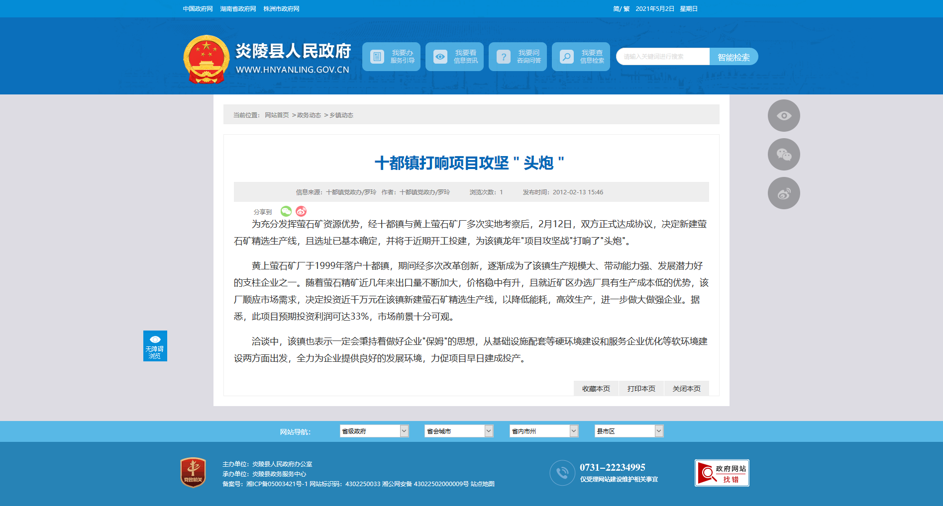 为充分发挥萤石矿资源优势,经十都镇与黄上萤石矿厂多次实地考察后,2月12日,双方正式达成协议,决定新建萤石矿精选生产线,且选址已基本确定,并将于近期开工投建,为该镇龙年"项目攻坚战"打响了"头炮"。