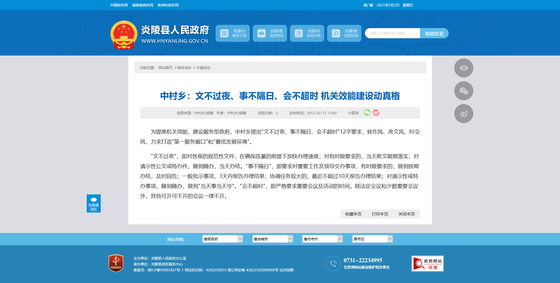为提高机关效能,建设服务型政府,中村乡提出"文不过夜、事不隔日、会不超时"12字要求,转作风、改文风、纠会风,力求打造"第一服务窗口"和"最优发展环境"。