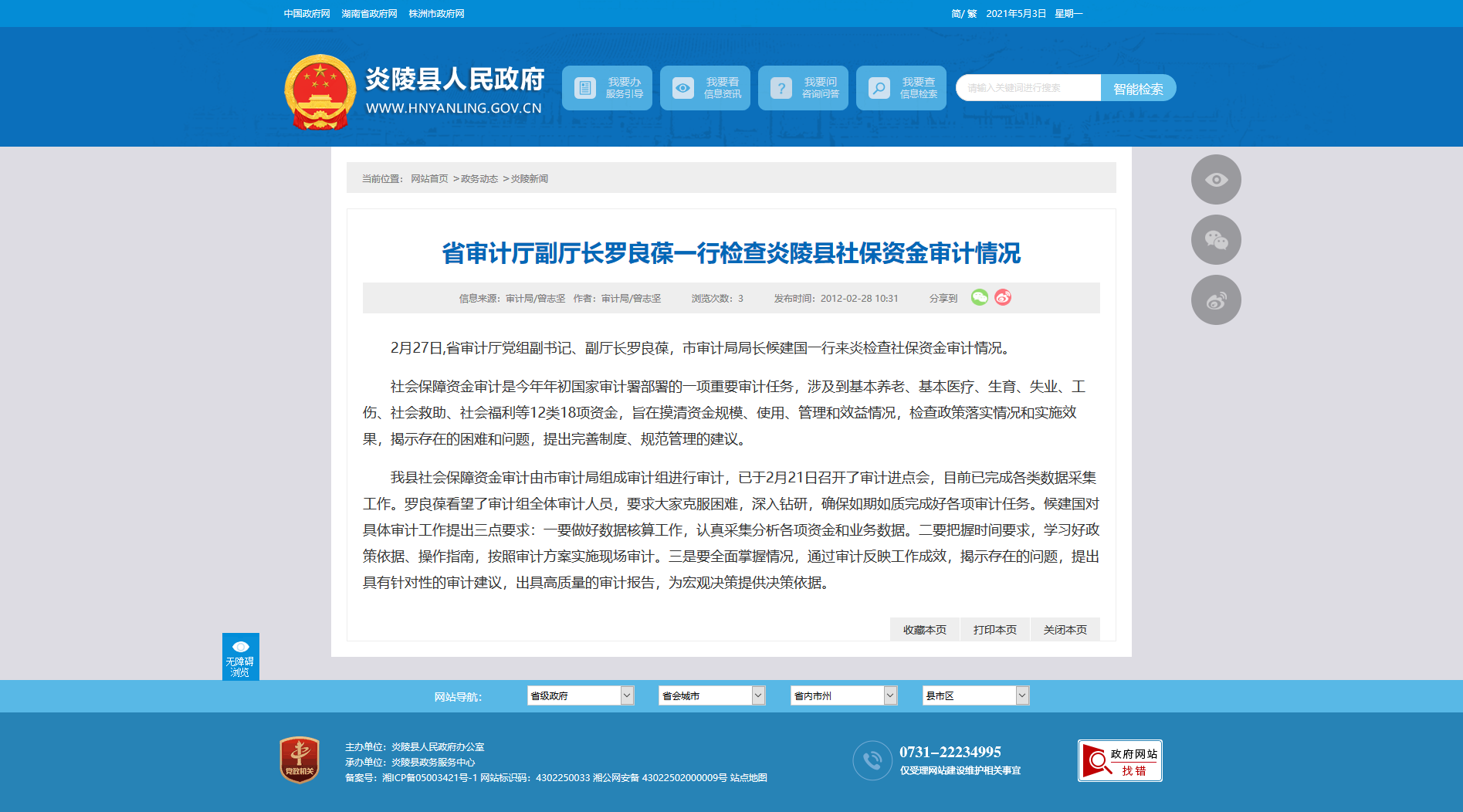 2月27日,省审计厅党组副书记、副厅长罗良葆,市审计局局长候建国一行来炎检查社保资金审计情况。