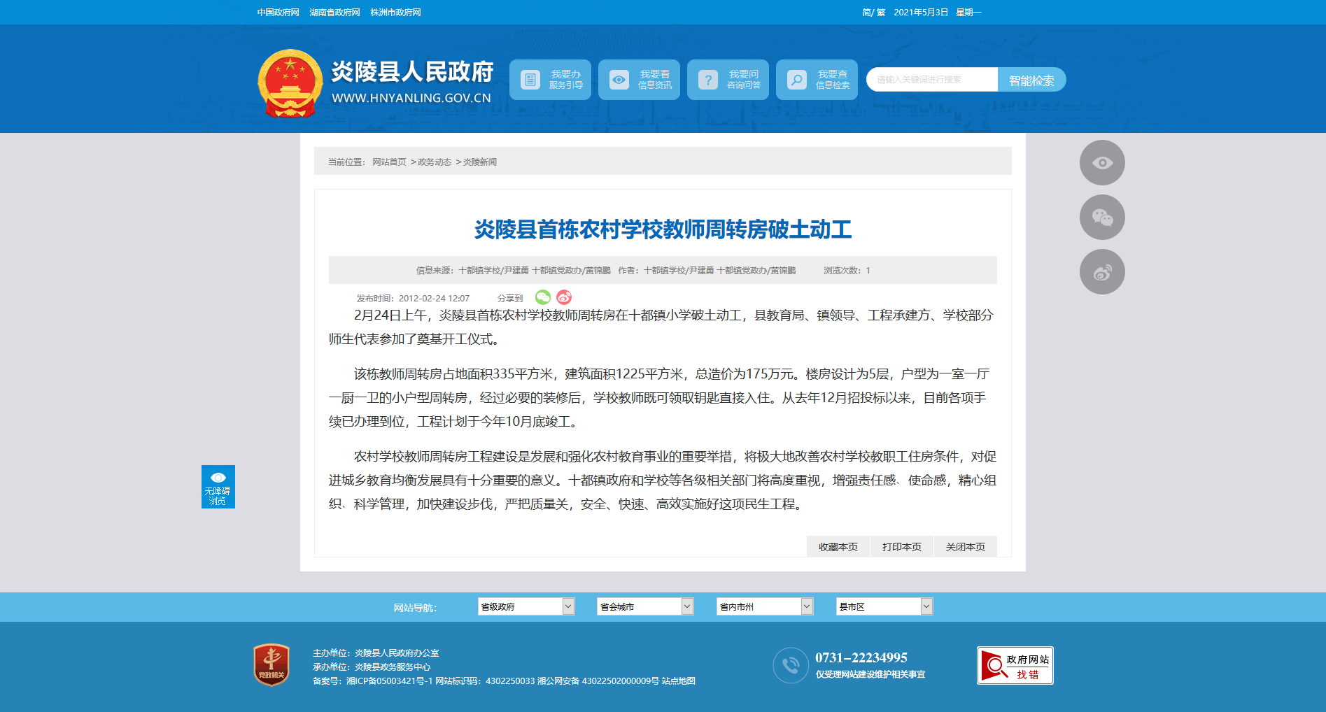 2月24日上午,炎陵县首栋农村学校教师周转房在十都镇小学破土动工,县教育局、镇领导、工程承建方、学校部分师生代表参加了奠基开工仪式。