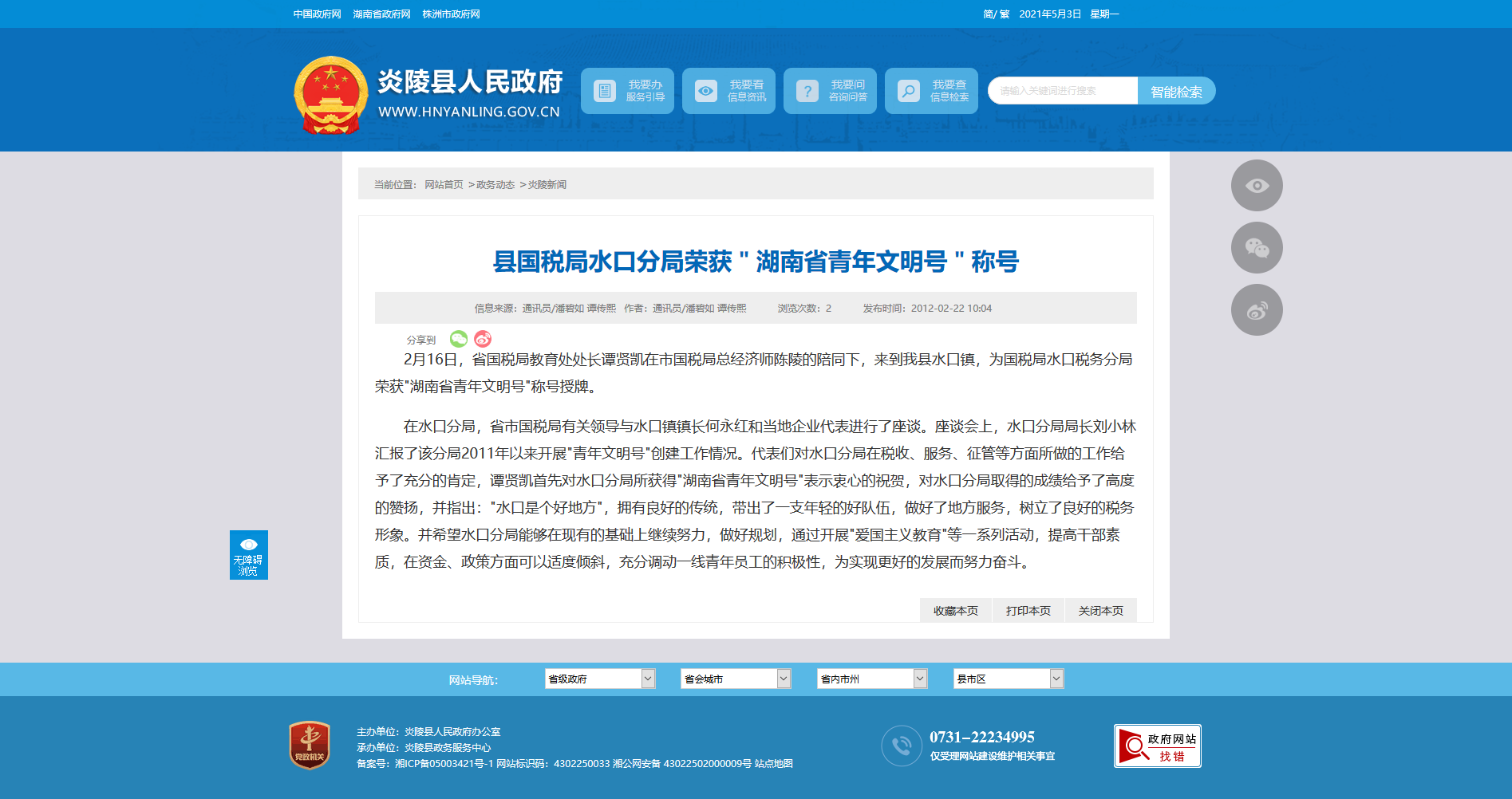 2月16日,省国税局教育处处长谭贤凯在市国税局总经济师陈陵的陪同下,来到我县水口镇,为国税局水口税务分局荣获"湖南省青年文明号"称号授牌。
