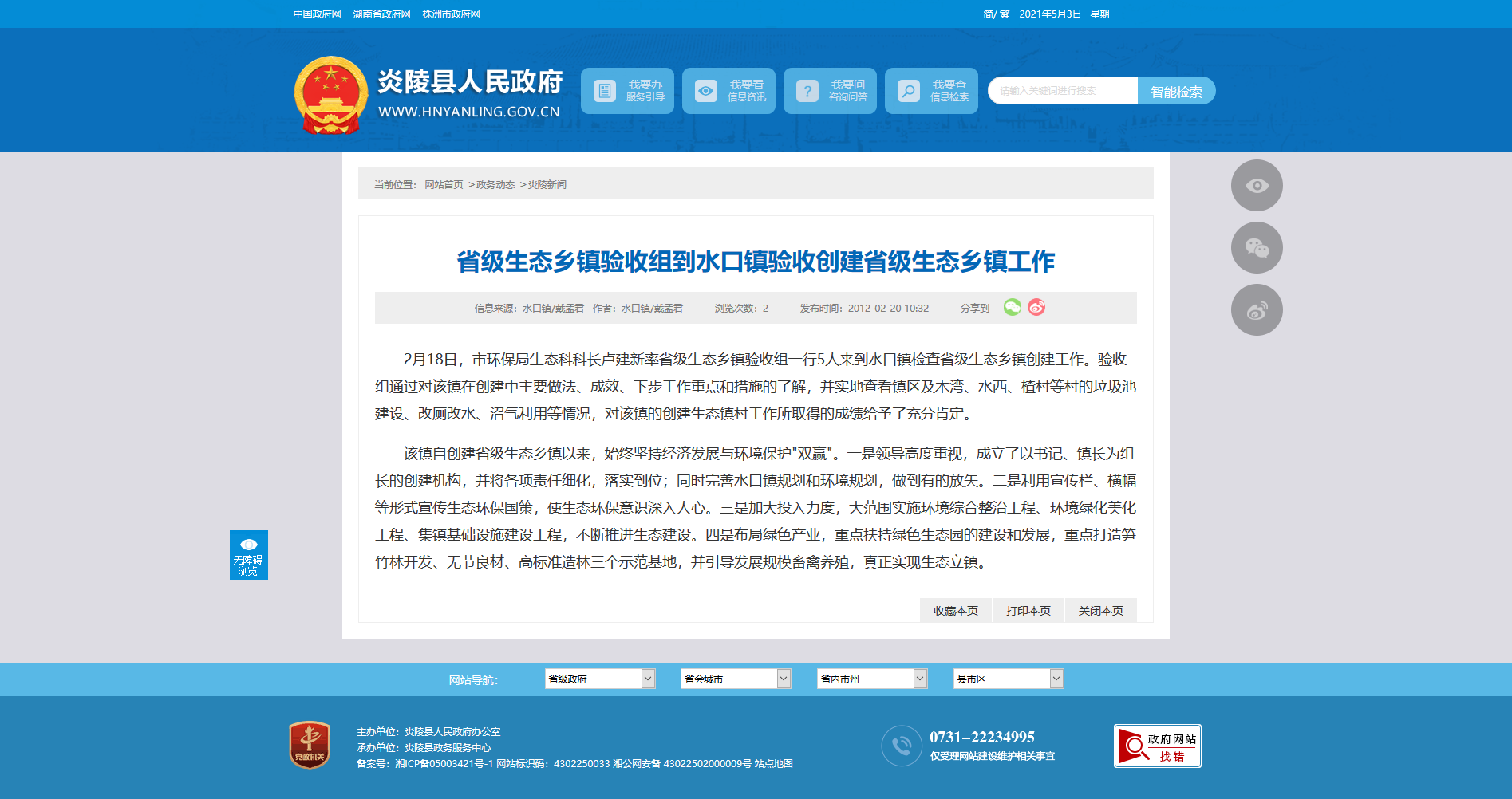 该镇自创建省级生态乡镇以来,始终坚持经济发展与环境保护"双赢"。一是领导高度重视,成立了以书记、镇长为组长的创建机构,并将各项责任细化,落实到位;同时完善水口镇规划和环境规划,做到有的放矢。二是利用宣传栏、横幅等形式宣传生态环保国策,使生态环保意识深入人心。三是加大投入力度,大范围实施环境综合整治工程、环境绿化美化工程、集镇基础设施建设工程,不断推进生态建设。四是布局绿色产业,重点扶持绿色生态园的建设和发展,重点打造笋竹林开发、无节良材、高标准造林三个示范基地,并引导发展规模畜禽养殖,真正实现生态立镇。