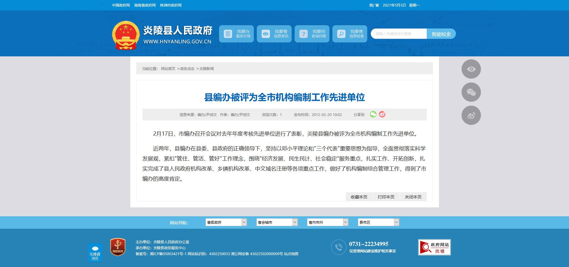 时间:2012-02-20 10:02:00 来源: 炎陵县人民政府 来源截图