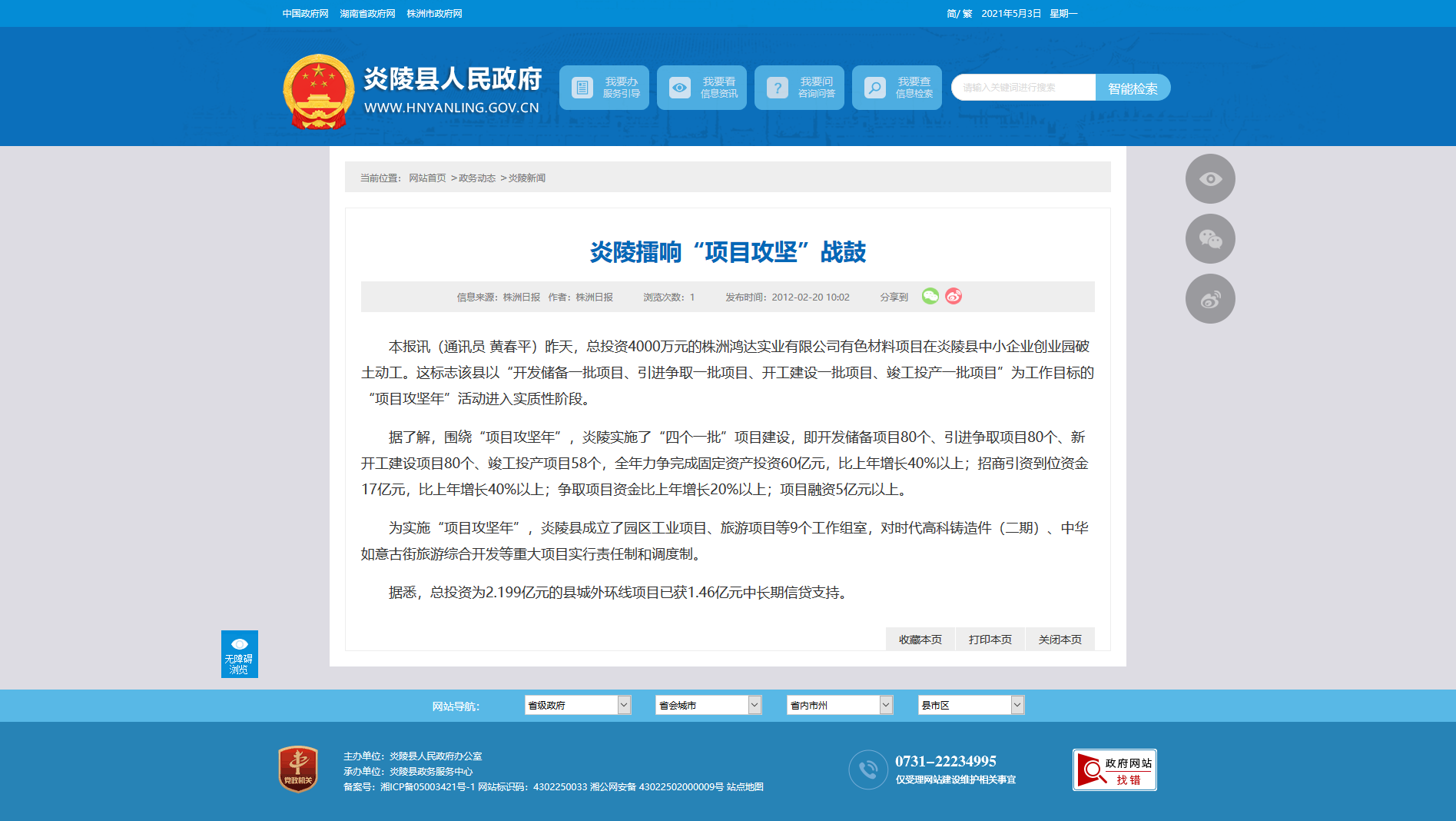 据了解,围绕“项目攻坚年”,炎陵实施了“四个一批”项目建设,即开发储备项目80个、引进争取项目80个、新开工建设项目80个、竣工投产项目58个,全年力争完成固定资产投资60亿元,比上年增长40%以上;招商引资到位资金17亿元,比上年增长40%以上;争取项目资金比上年增长20%以上;项目融资5亿元以上。