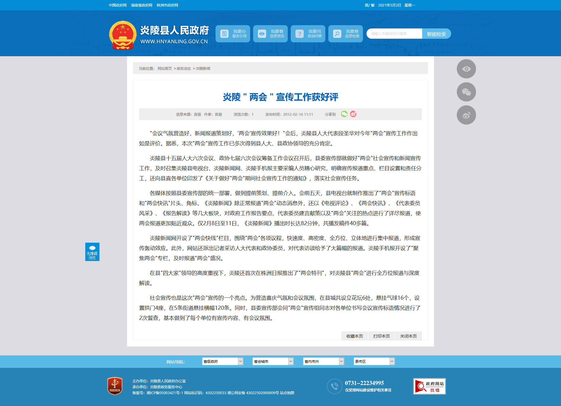 在县"四大家"领导的高度重视下,炎陵还首次在株洲日报推出了"两会特刊",对炎陵县"两会"进行全方位报道与深度解读。