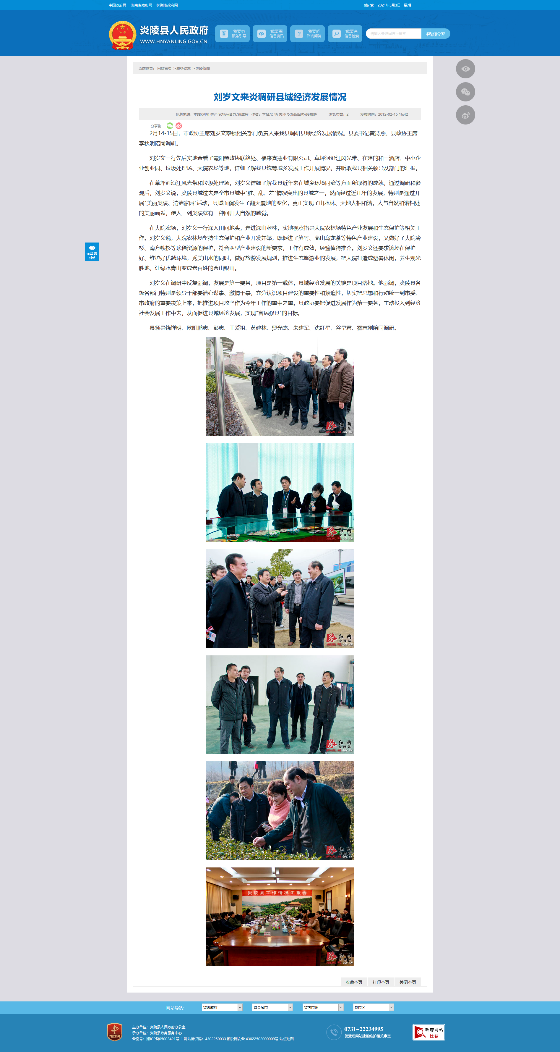 刘岁文在调研中反复强调,发展是第一要务,项目是第一载体,县域经济发展的关键是项目落地。他强调,炎陵县各级各部门特别是领导干部要潜心谋事、激情干事,充分认识项目建设的重要性和紧迫性,切实把思想和行动统一到市委、市政府的重要决策上来,把推进项目攻坚作为今年工作的重中之重。县政协要把促进发展作为第一要务,主动投入到经济社会发展工作中去,从而促进县域经济发展,实现"富民强县"的目标。
