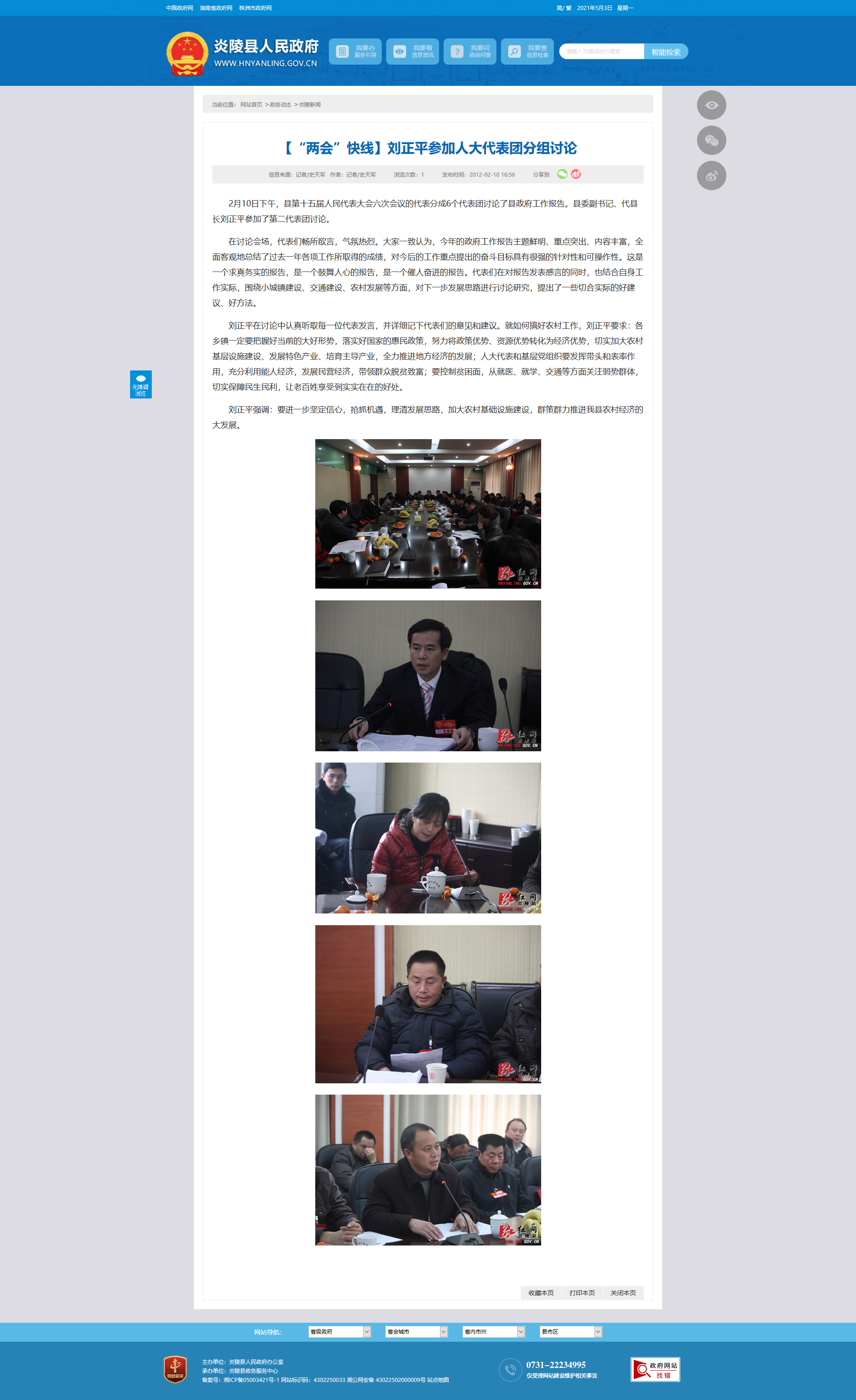 2月10日下午,县第十五届人民代表大会六次会议的代表分成6个代表团讨论了县政府工作报告。县委副书记、代县长刘正平参加了第二代表团讨论。