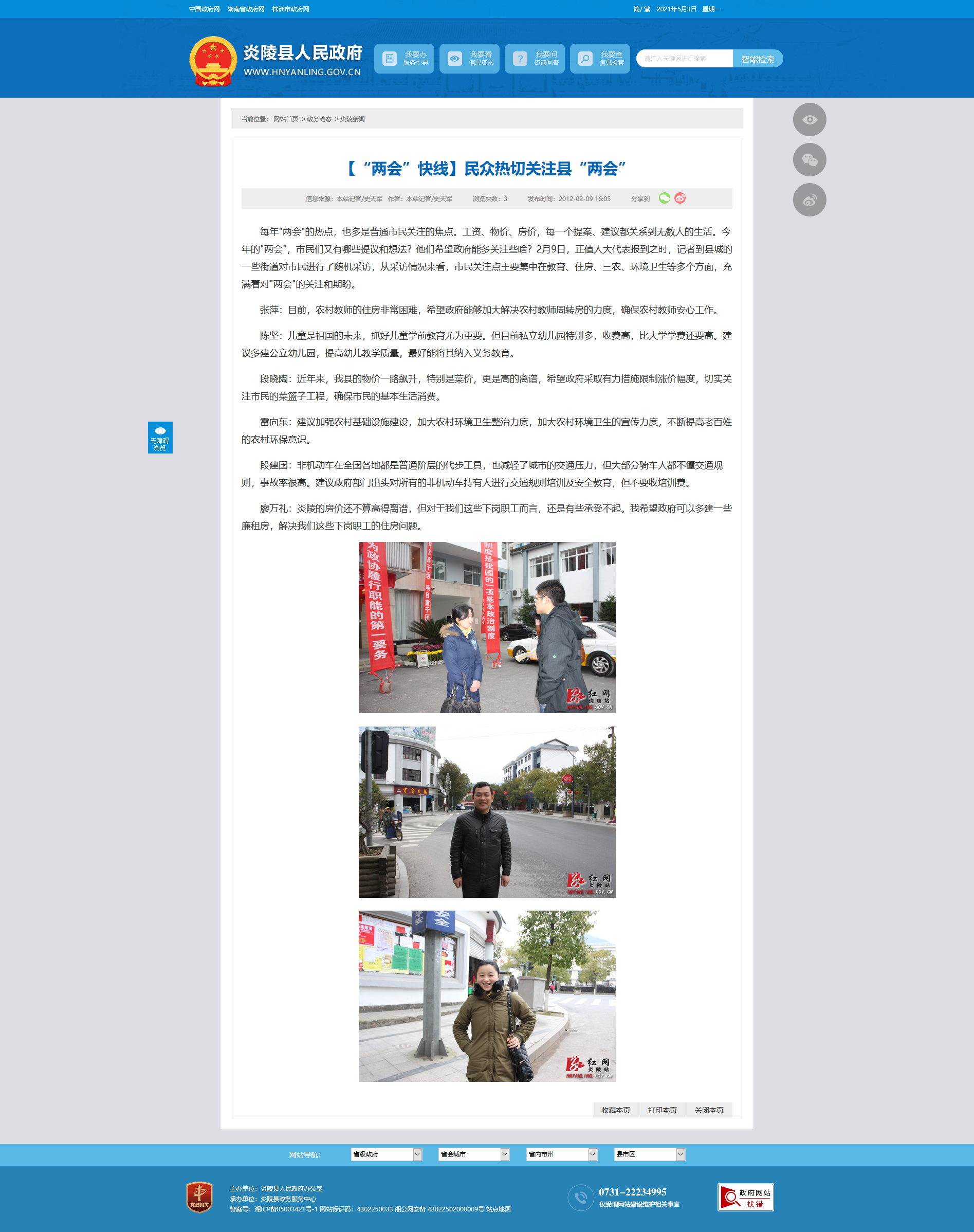 每年"两会"的热点,也多是普通市民关注的焦点。工资、物价、房价,每一个提案、建议都关系到无数人的生活。今年的"两会",市民们又有哪些提议和想法?他们希望政府能多关注些啥?2月9日,正值人大代表报到之时,记者到县城的一些街道对市民进行了随机采访,从采访情况来看,市民关注点主要集中在教育、住房、三农、环境卫生等多个方面,充满着对"两会"的关注和期盼。