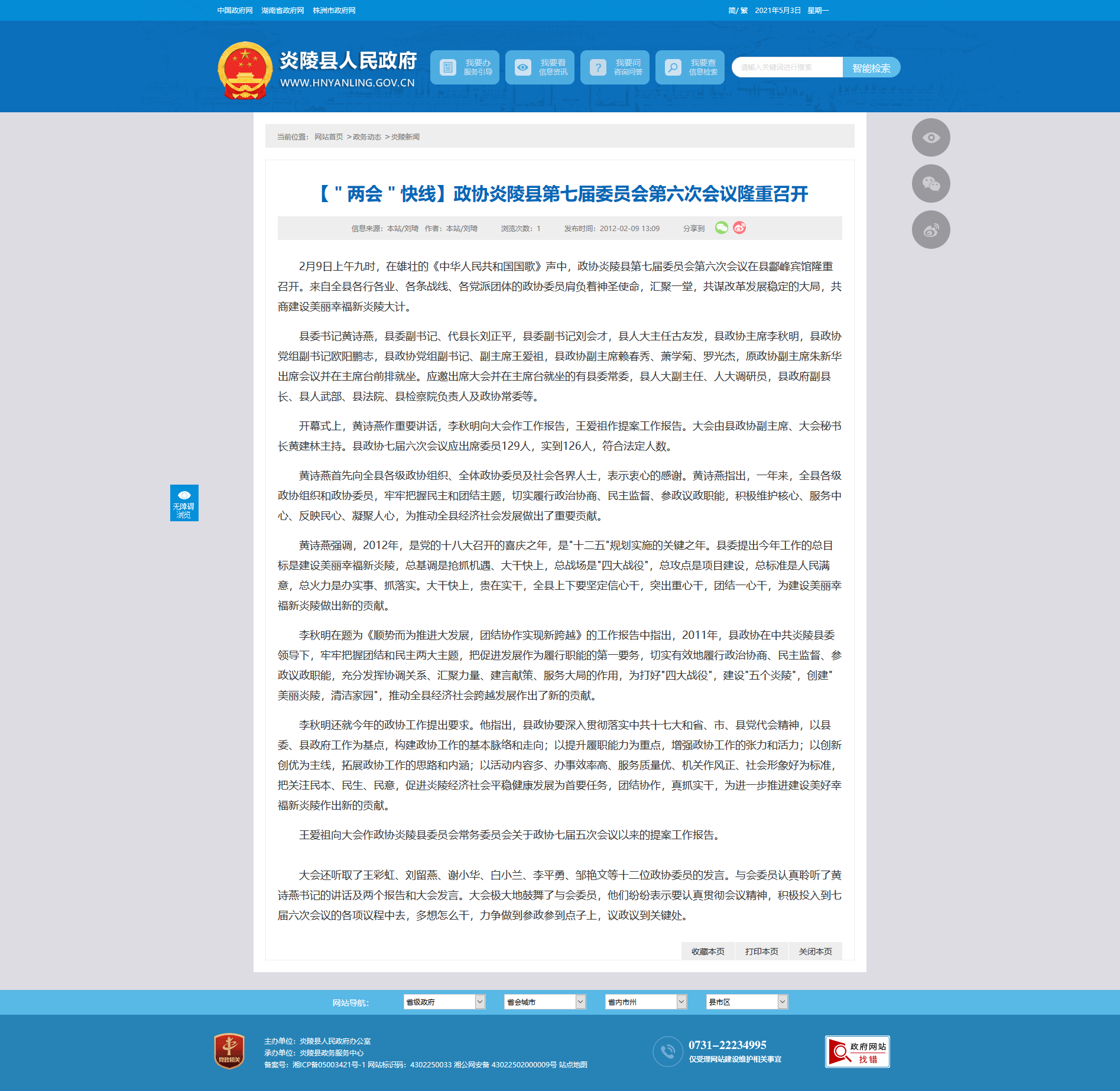 2月9日上午九时,在雄壮的《中华人民共和国国歌》声中,政协炎陵县第七届委员会第六次会议在县酃峰宾馆隆重召开。来自全县各行各业、各条战线、各党派团体的政协委员肩负着神圣使命,汇聚一堂,共谋改革发展稳定的大局,共商建设美丽幸福新炎陵大计。