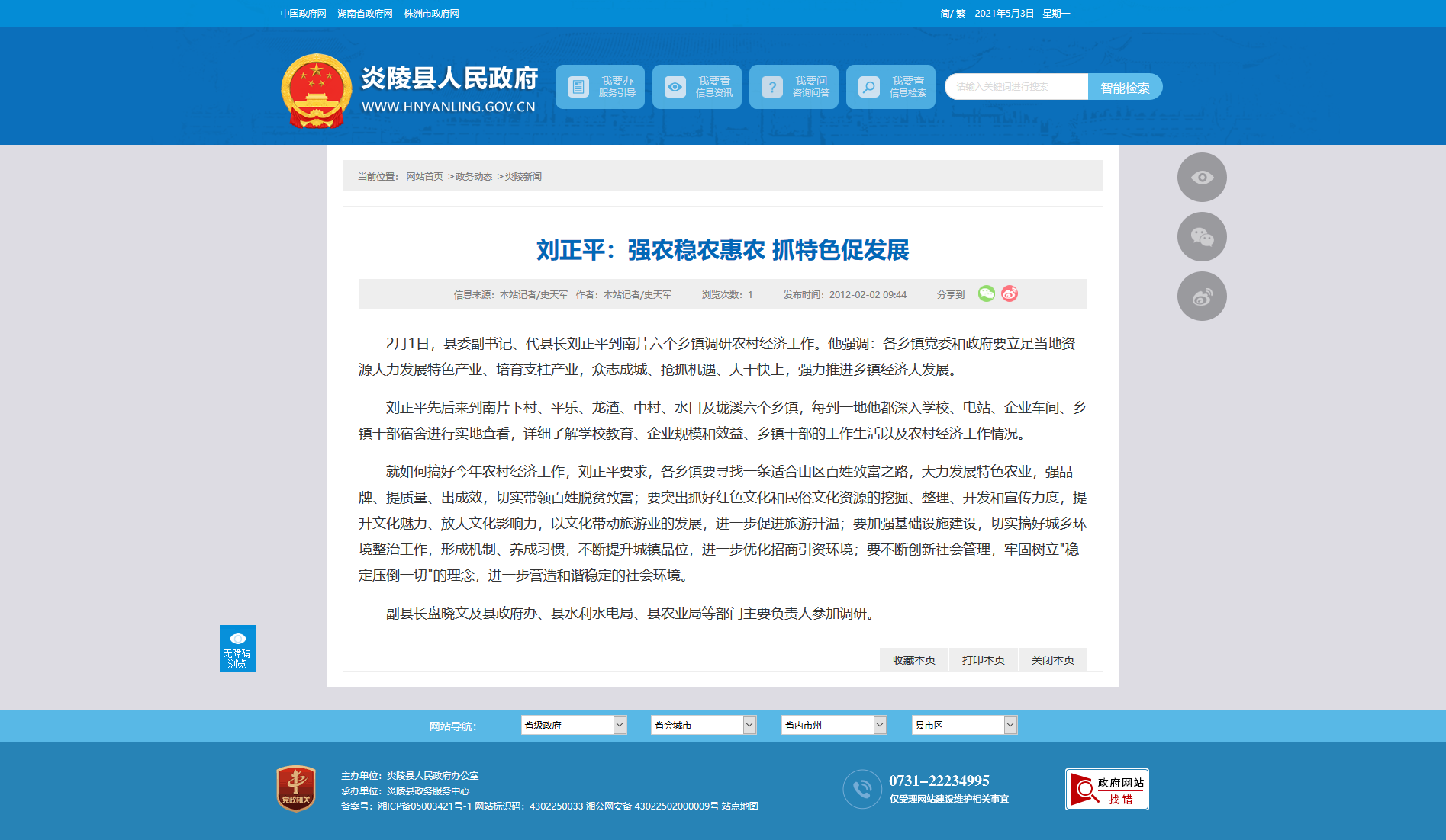 就如何搞好今年农村经济工作,刘正平要求,各乡镇要寻找一条适合山区百姓致富之路,大力发展特色农业,强品牌、提质量、出成效,切实带领百姓脱贫致富;要突出抓好红色文化和民俗文化资源的挖掘、整理、开发和宣传力度,提升文化魅力、放大文化影响力,以文化带动旅游业的发展,进一步促进旅游升温;要加强基础设施建设,切实搞好城乡环境整治工作,形成机制、养成习惯,不断提升城镇品位,进一步优化招商引资环境;要不断创新社会管理,牢固树立"稳定压倒一切"的理念,进一步营造和谐稳定的社会环境。