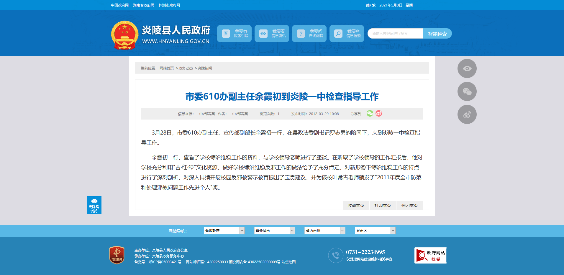 时间:2012-03-29 10:08:00 来源: 炎陵县人民政府 来源截图