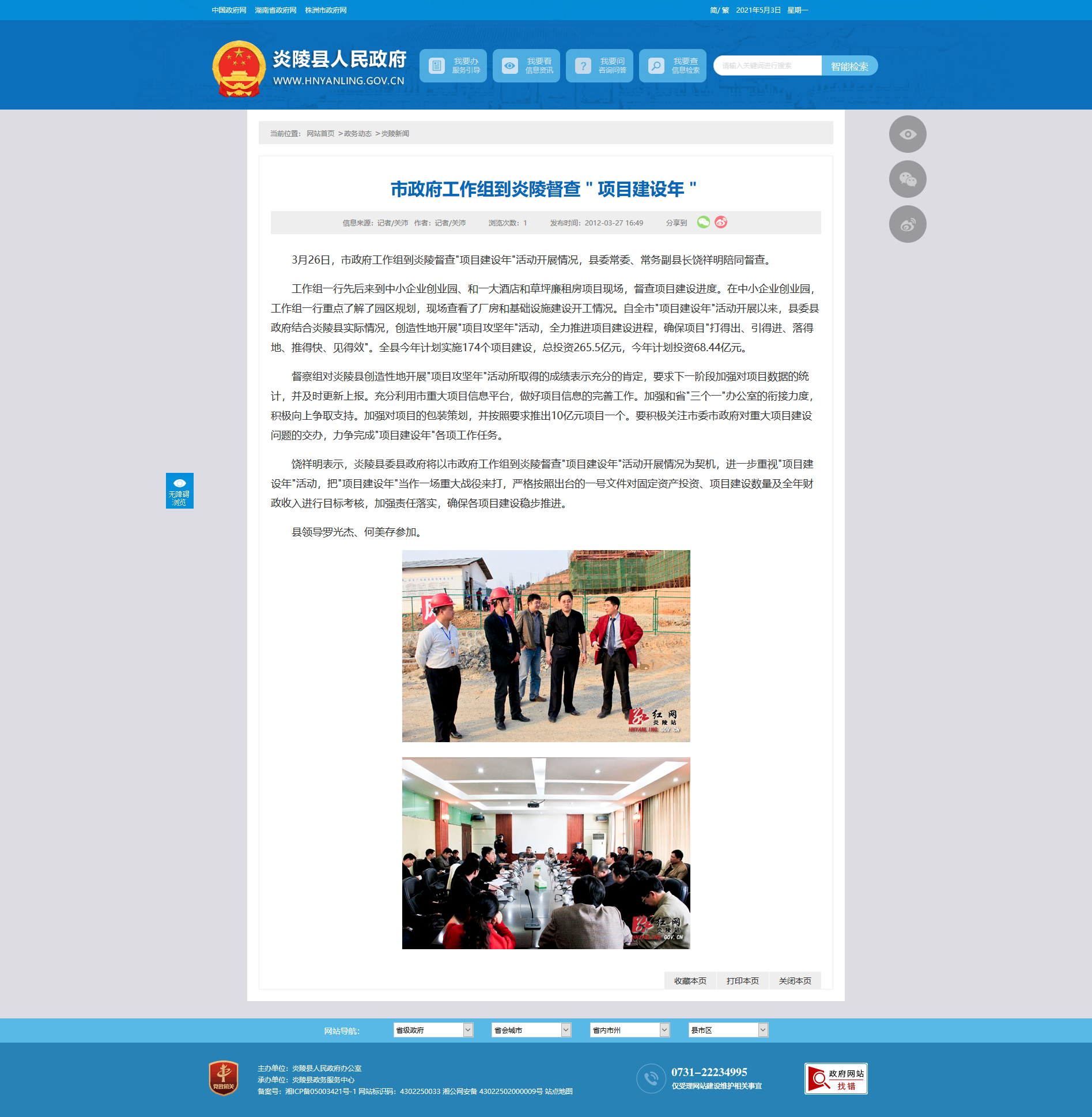 3月26日,市政府工作组到炎陵督查"项目建设年"活动开展情况,县委常委、常务副县长饶祥明陪同督查。