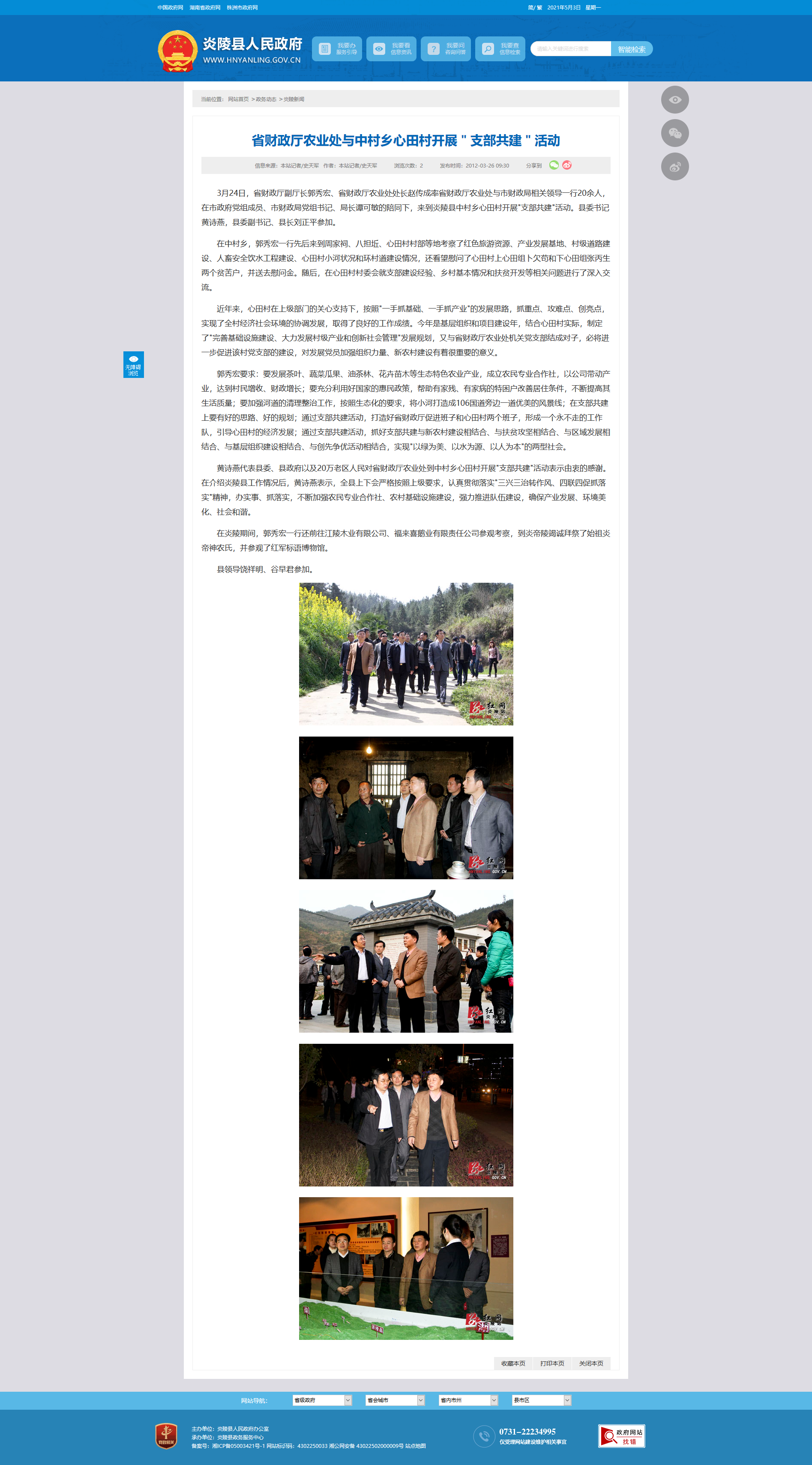3月24日,省财政厅副厅长郭秀宏、省财政厅农业处处长赵传成率省财政厅农业处与市财政局相关领导一行20余人,在市政府党组成员、市财政局党组书记、局长谭可敏的陪同下,来到炎陵县中村乡心田村开展"支部共建"活动。县委书记黄诗燕,县委副书记、县长刘正平参加。