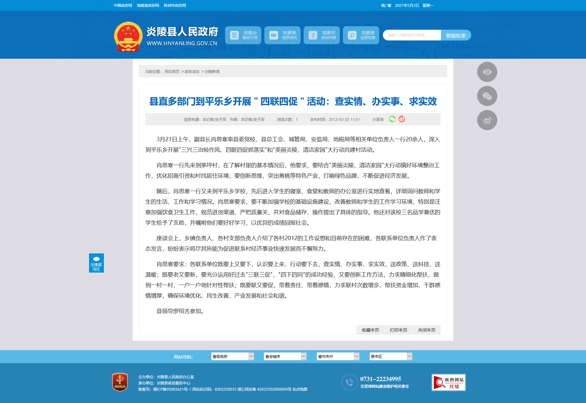 3月21日上午,副县长肖思寒率县委党校、县总工会、城管局、安监局、地税局等相关单位负责人一行20余人,深入到平乐乡开展"三兴三治转作风、四联四促抓落实"和"美丽炎陵、清洁家园"大行动共建村活动。