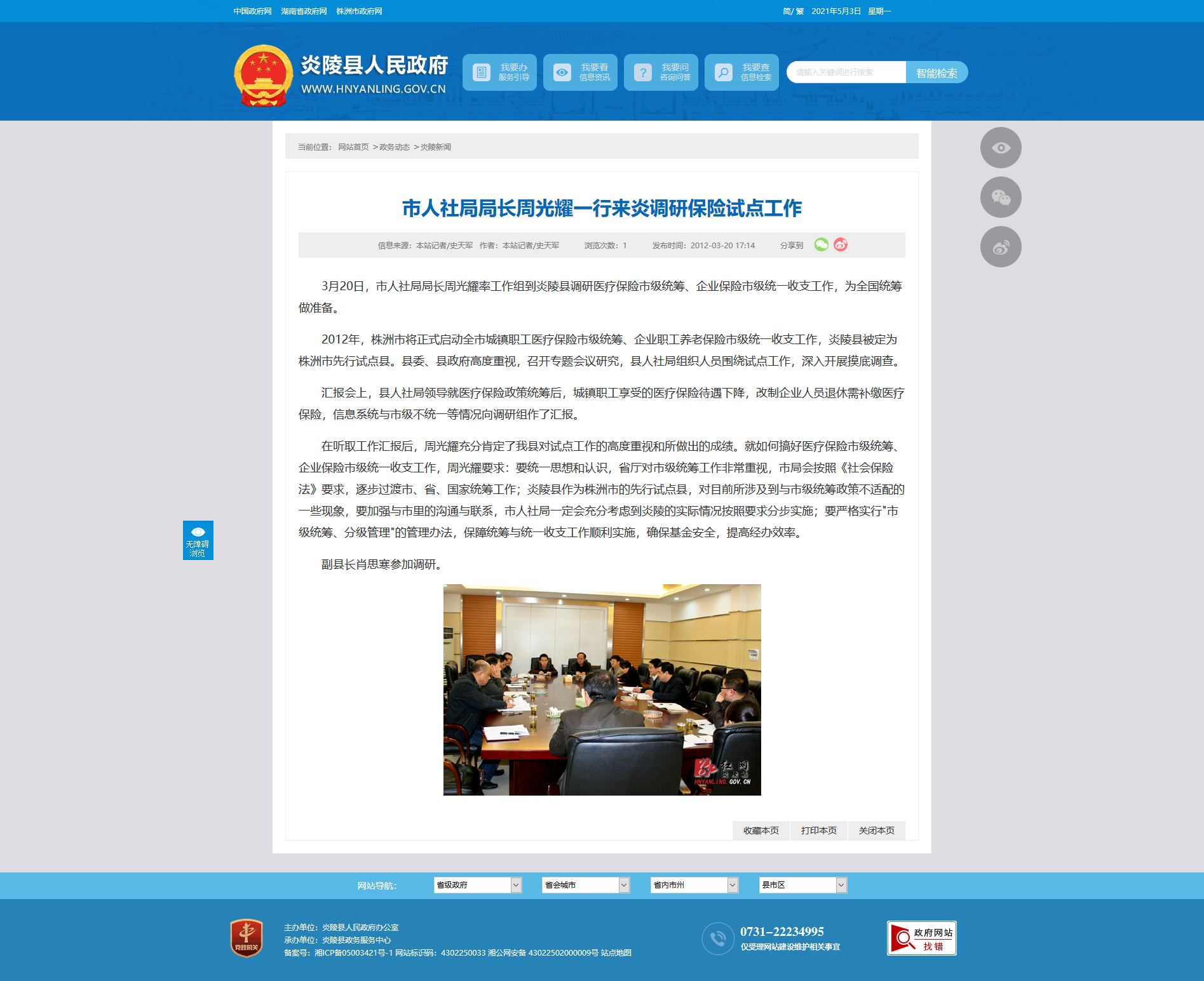 2012年,株洲市将正式启动全市城镇职工医疗保险市级统筹、企业职工养老保险市级统一收支工作,炎陵县被定为株洲市先行试点县。县委、县政府高度重视,召开专题会议研究,县人社局组织人员围绕试点工作,深入开展摸底调查。