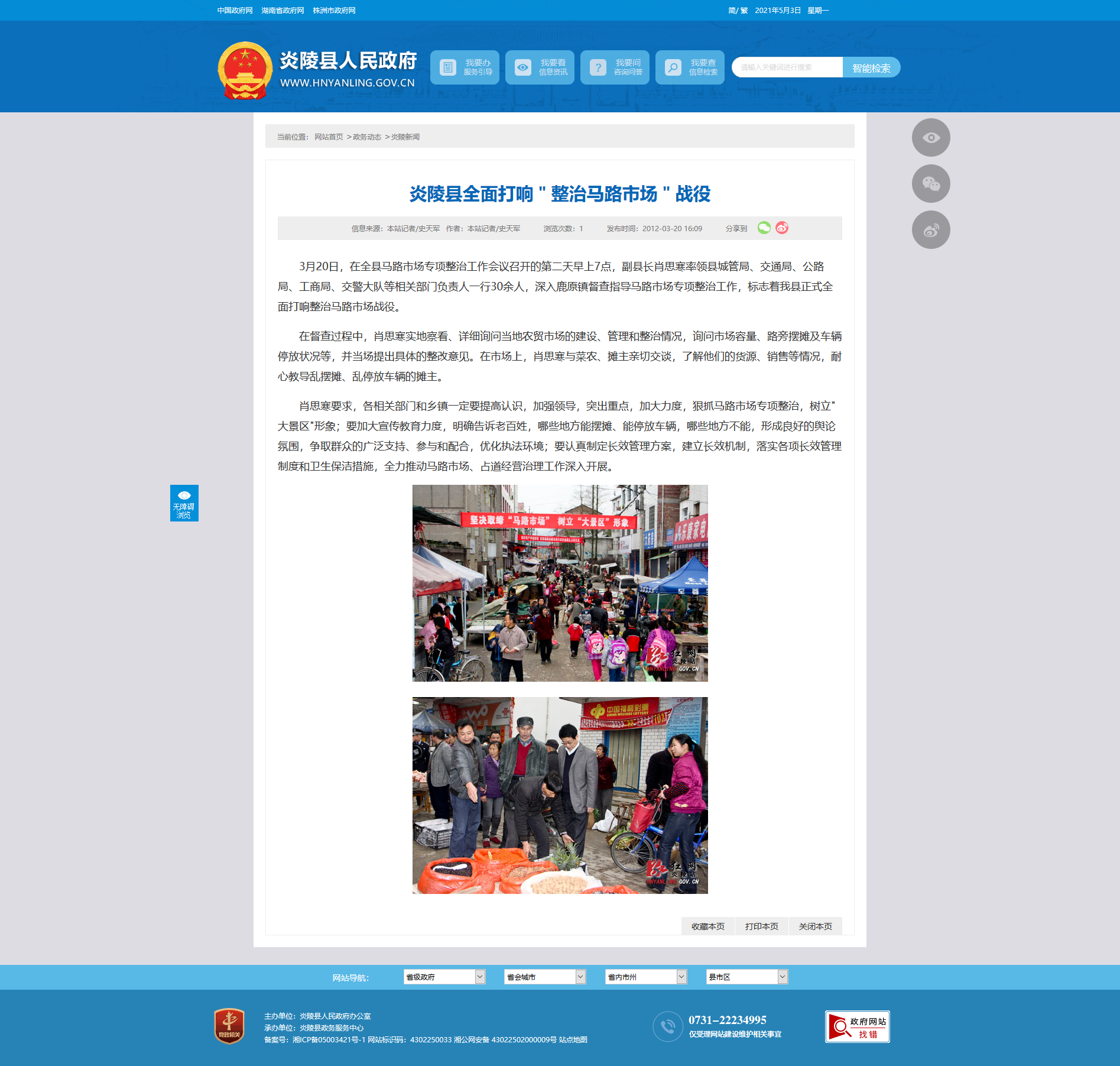 3月20日,在全县马路市场专项整治工作会议召开的第二天早上7点,副县长肖思寒率领县城管局、交通局、公路局、工商局、交警大队等相关部门负责人一行30余人,深入鹿原镇督查指导马路市场专项整治工作,标志着我县正式全面打响整治马路市场战役。