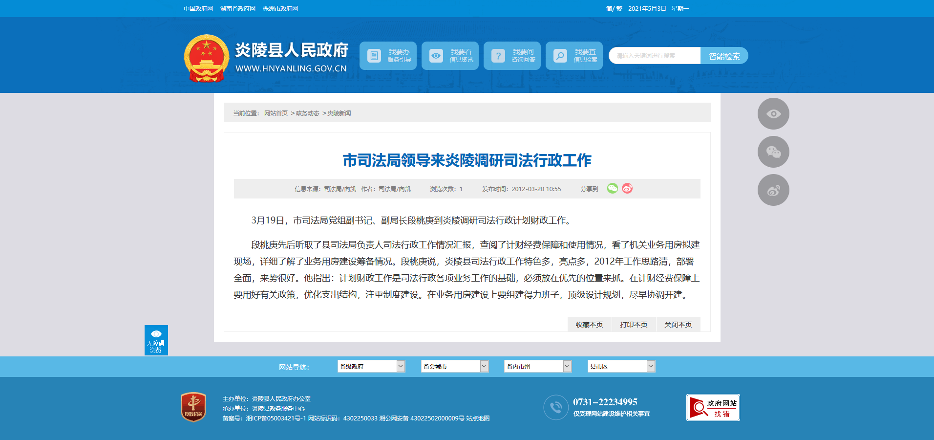 时间:2012-03-20 10:55:00 来源: 炎陵县人民政府 来源截图