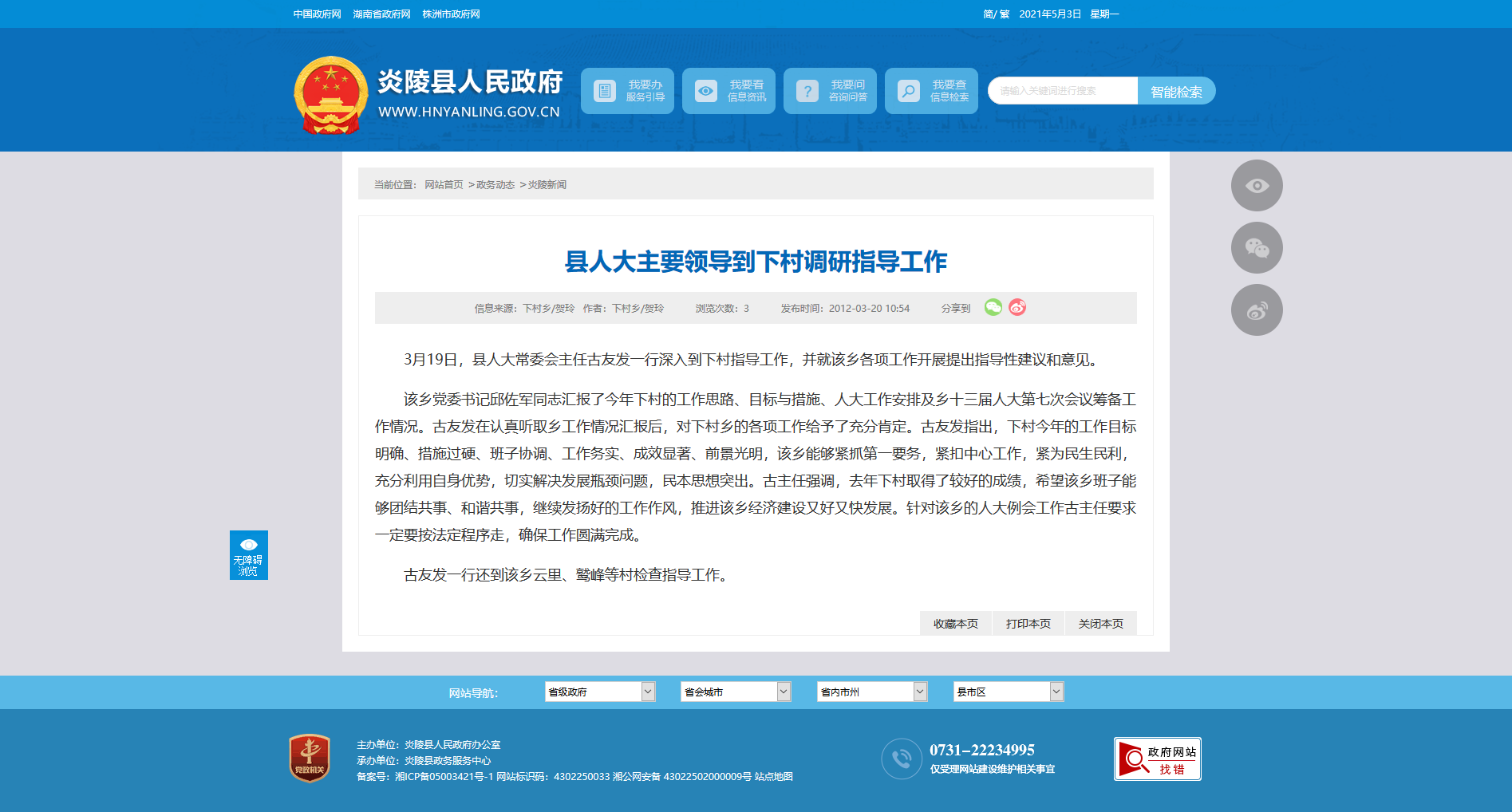 3月19日,县人大常委会主任古友发一行深入到下村指导工作,并就该乡各项工作开展提出指导性建议和意见。