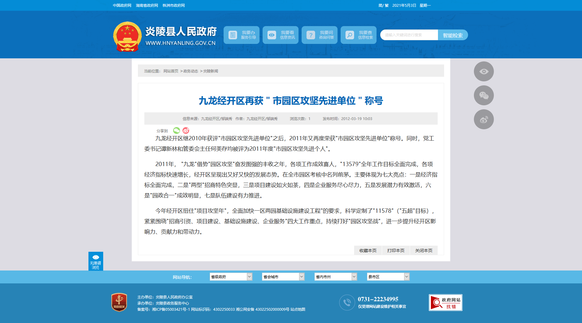 九龙经开区继2010年获评"市园区攻坚先进单位"之后,2011年又再度荣获"市园区攻坚先进单位"称号。同时,党工委书记谭新林和管委会主任何美存均被评为2011年度"市园区攻坚先进个人"。