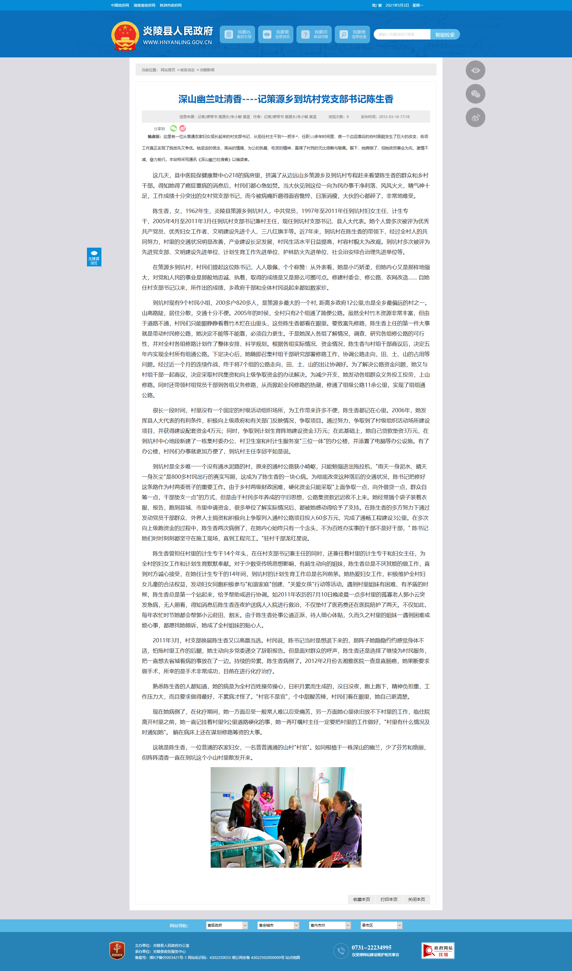 在策源乡到坑村,村民们提起这位陈书记,人人敬佩,个个称赞:从外表看,她是小巧娇柔,但她内心又是那样地强大,对党和人民的事业是那般地忠诚、执着,取得的成绩是又是那么可圈可点。修建村委会、修公路、农网改造…… 自她任村支部书记以来,所作出的成绩,乡政府干部和全体村民说起来都如数家珍。