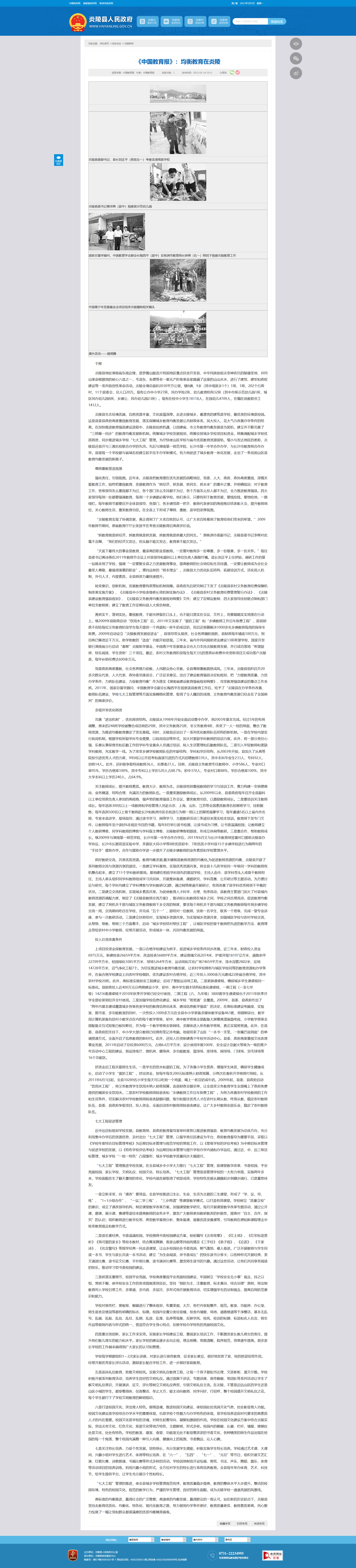 党委政府高度重教,社会各界倾力促教,人民群众热心支教,全县尊师重教蔚然成风。三年来,炎陵县组织召开20多次群众代表、人大代表、政协委员座谈会,广泛征求意见,出台了建设教育强县决定和规划,把“力提教育质量、力优办学条件、力抓队伍建设、力促教育均衡”作为落实《湖南省建设教育强省规划纲要》、攻坚教育强县建设的重点工作来抓。2011年,国家总督学顾问、中国教育学会副会长陶西平在视察该县教育工作后,给予了“炎陵县在办学条件改善、教师队伍建设、学校七大工程管理等方面实施精细化管理,取得了令人瞩目的成绩,义务教育均衡发展已经走在了全国前列”的高度评价。