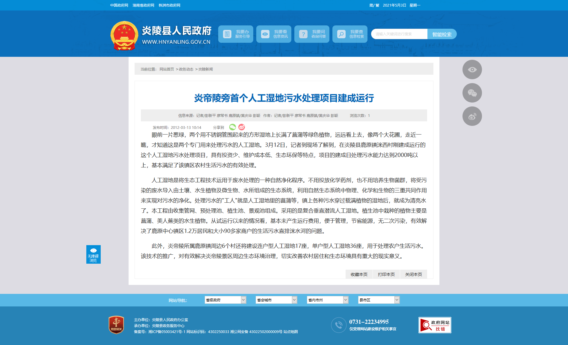 此外,炎帝陵所属鹿原镇周边6个村还将建设连户型人工湿地17座,单户型人工湿地36座,用于处理农户生活污水。该技术的推广,对有效解决炎帝陵景区周边生态环境治理,切实改善农村居住和生态环境具有重大的现实意义。