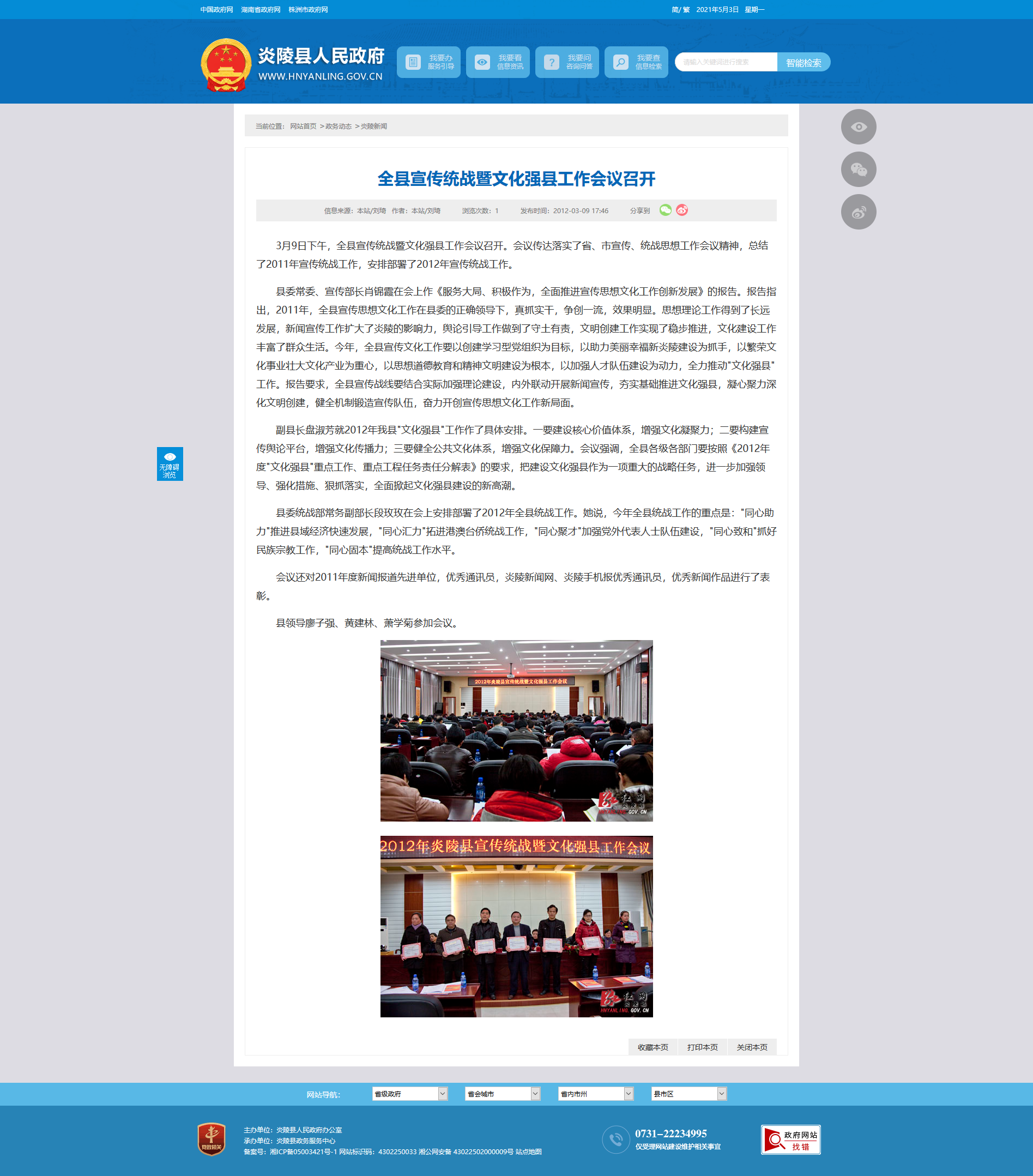 会议还对2011年度新闻报道先进单位,优秀通讯员,炎陵新闻网、炎陵手机报优秀通讯员,优秀新闻作品进行了表彰。