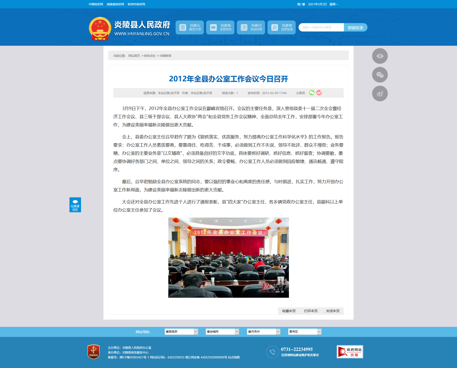 3月9日下午,2012年全县办公室工作会议在酃峰宾馆召开。会议的主要任务是,深入贯彻县委十一届二次全会暨经济工作会议、县三级干部会议、县人大政协"两会"和全县党务工作会议精神,全面总结去年工作,安排部署今年办公室工作,为建设美丽幸福新炎陵做出更大贡献。