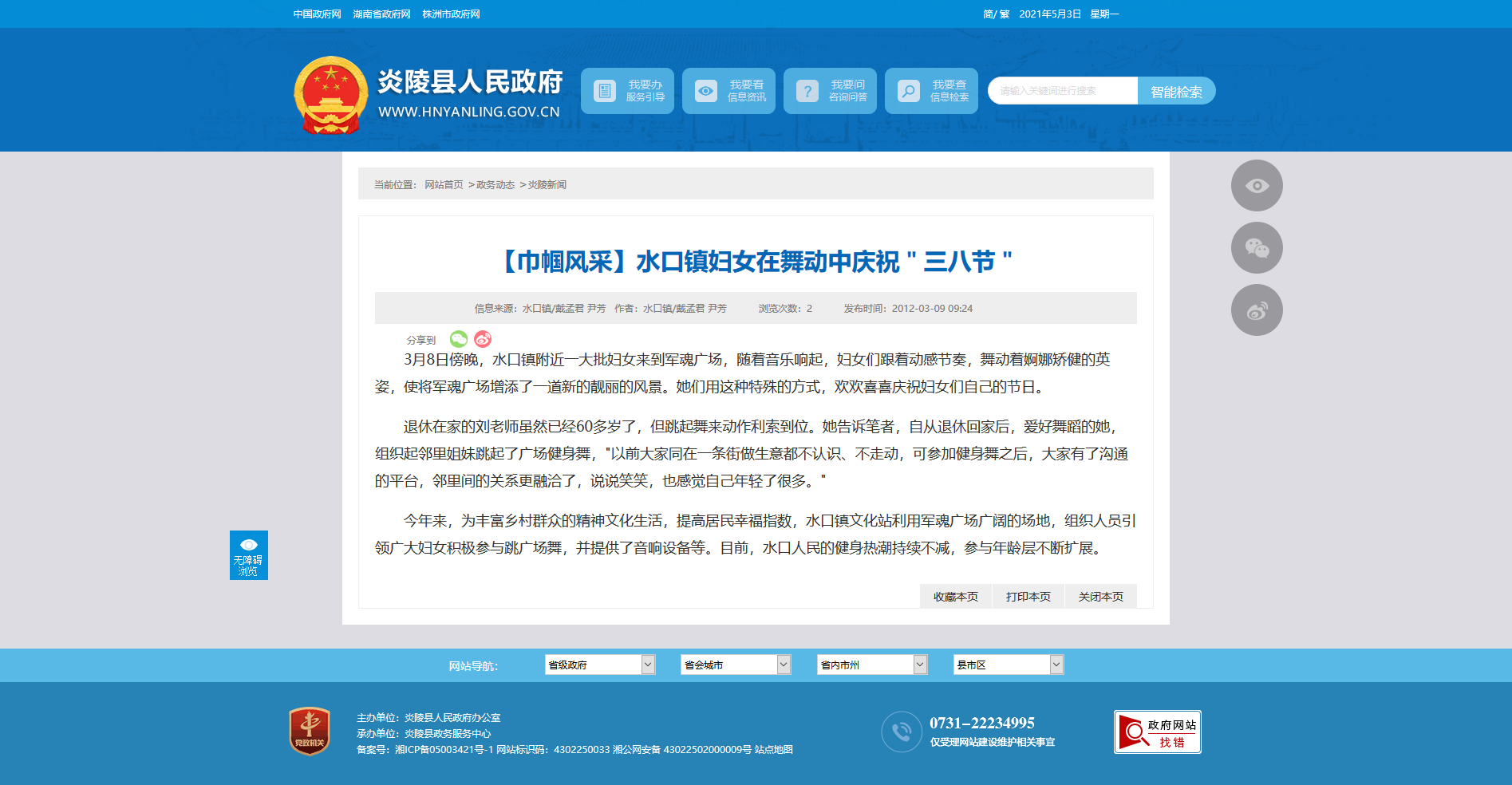 今年来,为丰富乡村群众的精神文化生活,提高居民幸福指数,水口镇文化站利用军魂广场广阔的场地,组织人员引领广大妇女积极参与跳广场舞,并提供了音响设备等。目前,水口人民的健身热潮持续不减,参与年龄层不断扩展。