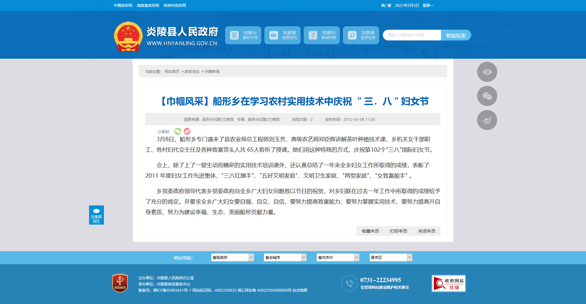 3月8日,船形乡专门请来了县农业局总工程师刘玉芳、高级农艺师邓臣辉讲解茶叶种植技术课,乡机关女干部职工、各村妇代会主任及各种致富带头人共 65人聆听了授课。她们用这种特殊的方式,庆祝第102个"三八"国际妇女节。