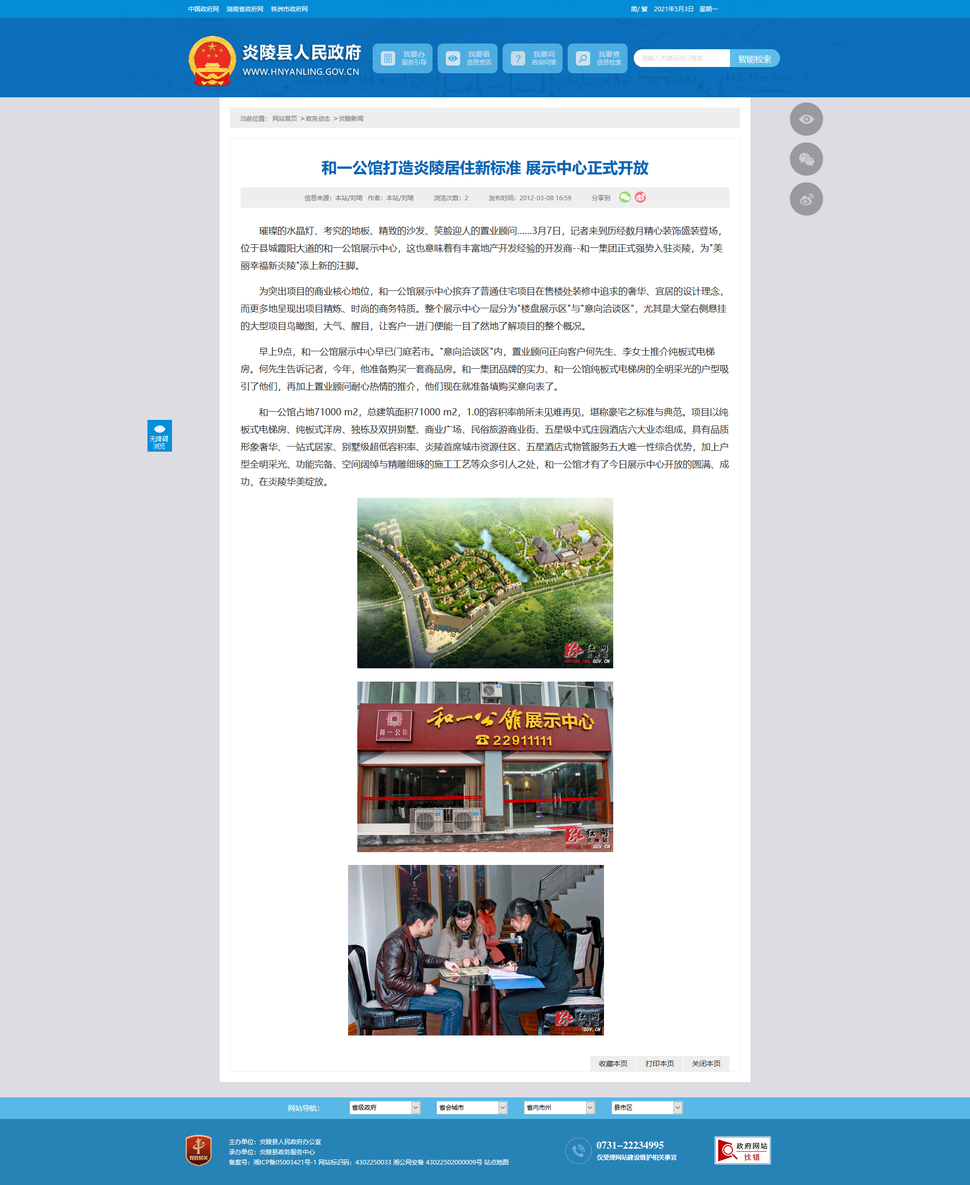 璀璨的水晶灯、考究的地板、精致的沙发、笑脸迎人的置业顾问……3月7日,记者来到历经数月精心装饰盛装登场,位于县城霞阳大道的和一公馆展示中心,这也意味着有丰富地产开发经验的开发商--和一集团正式强势入驻炎陵,为"美丽幸福新炎陵"添上新的注脚。
