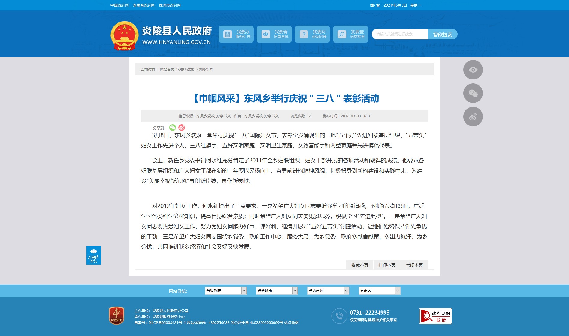3月8日,东风乡欢聚一堂举行庆祝"三八"国际妇女节,表彰全乡涌现出的一批"五个好"先进妇联基层组织、"五带头"妇女工作先进个人、三八红旗手、五好文明家庭、文明卫生家庭、女致富能手和两型家庭等先进模范代表。