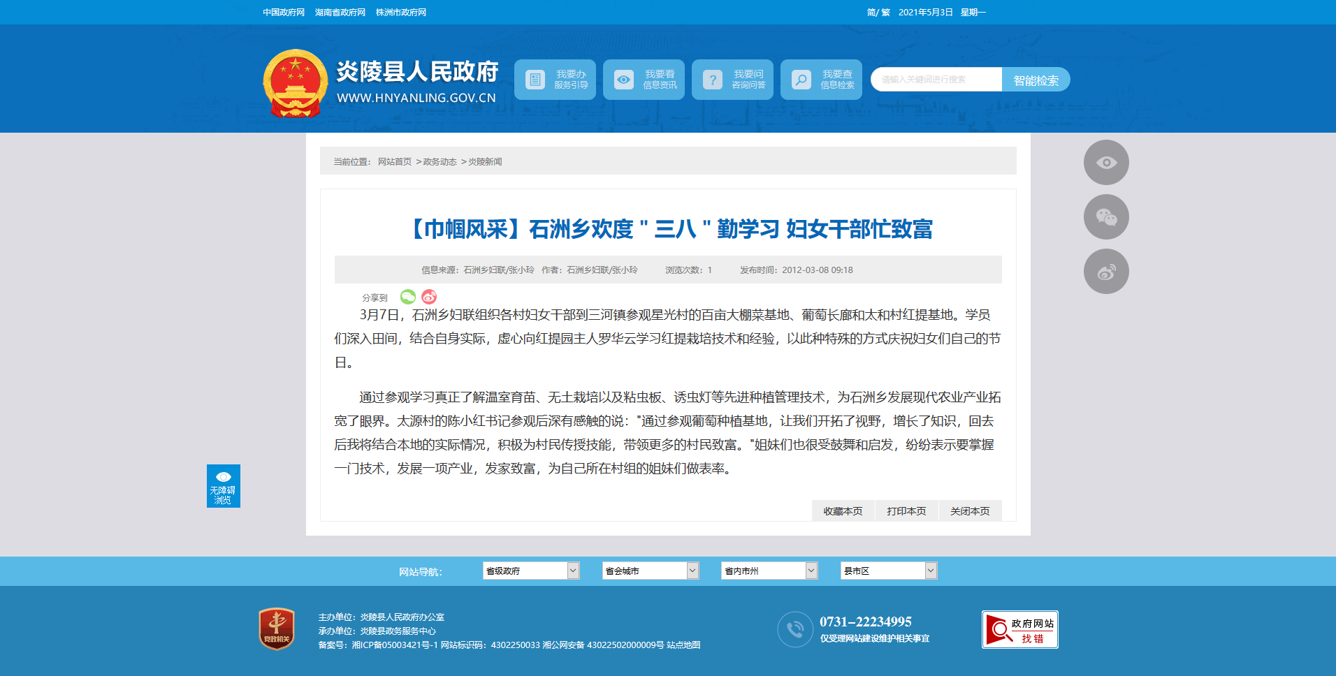 3月7日,石洲乡妇联组织各村妇女干部到三河镇参观星光村的百亩大棚菜基地、葡萄长廊和太和村红提基地。学员们深入田间,结合自身实际,虚心向红提园主人罗华云学习红提栽培技术和经验,以此种特殊的方式庆祝妇女们自己的节日。