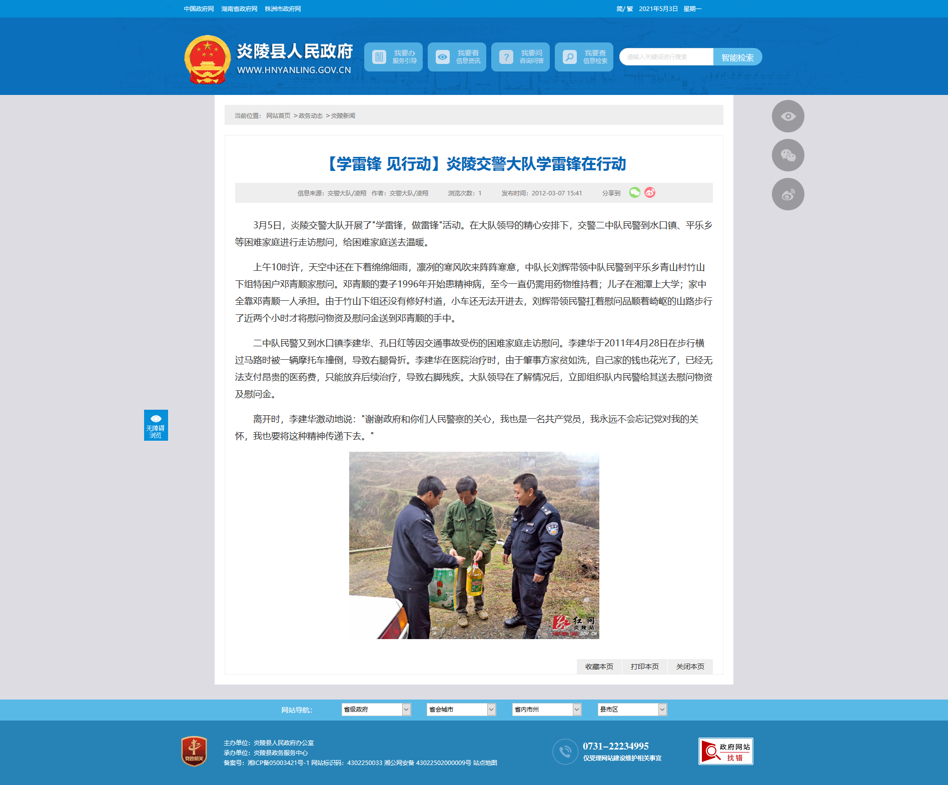 3月5日,炎陵交警大队开展了"学雷锋,做雷锋"活动。在大队领导的精心安排下,交警二中队民警到水口镇、平乐乡等困难家庭进行走访慰问,给困难家庭送去温暖。