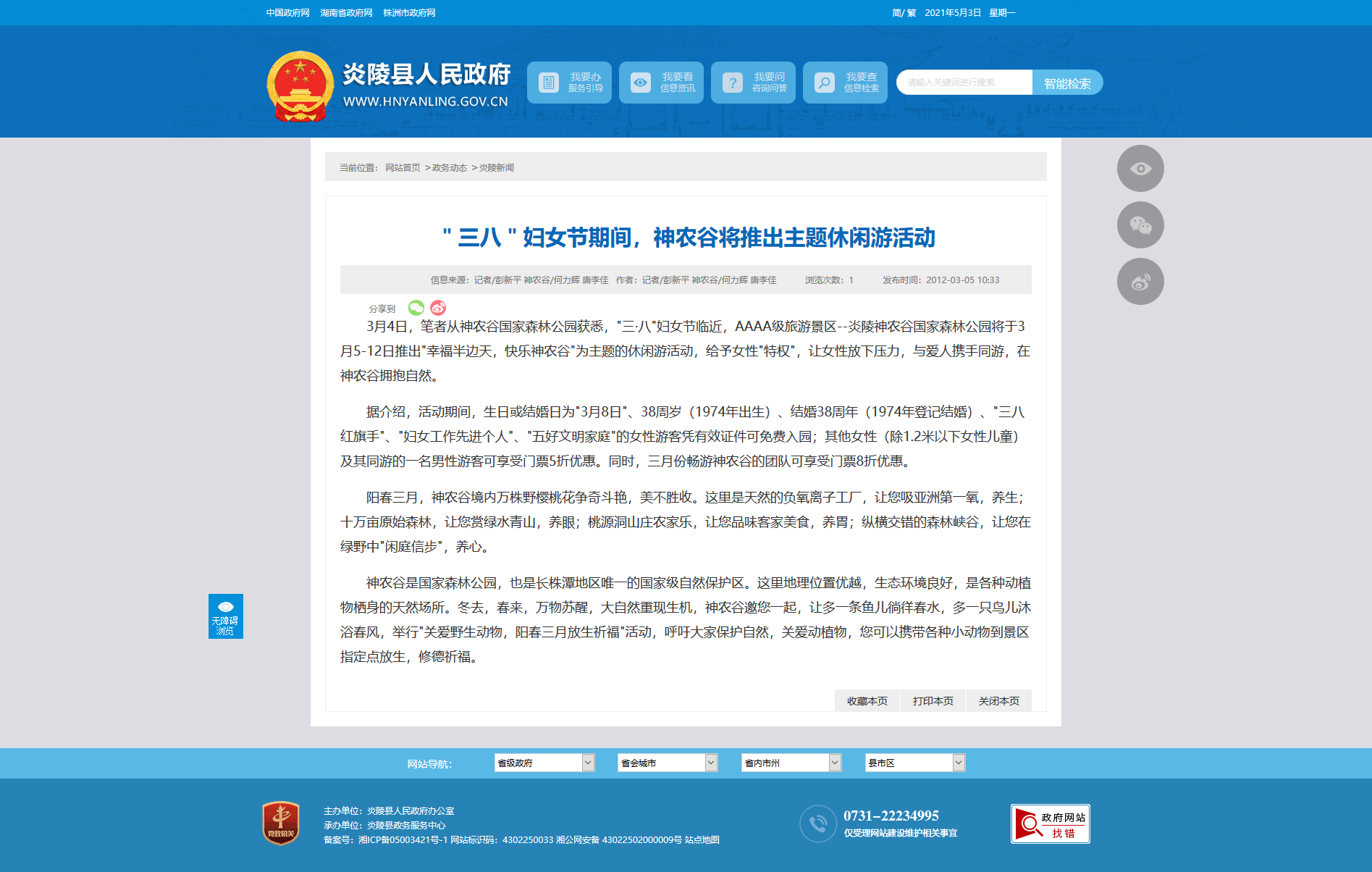 3月4日,笔者从神农谷国家森林公园获悉,"三·八"妇女节临近,AAAA级旅游景区--炎陵神农谷国家森林公园将于3月5-12日推出"幸福半边天,快乐神农谷"为主题的休闲游活动,给予女性"特权",让女性放下压力,与爱人携手同游,在神农谷拥抱自然。