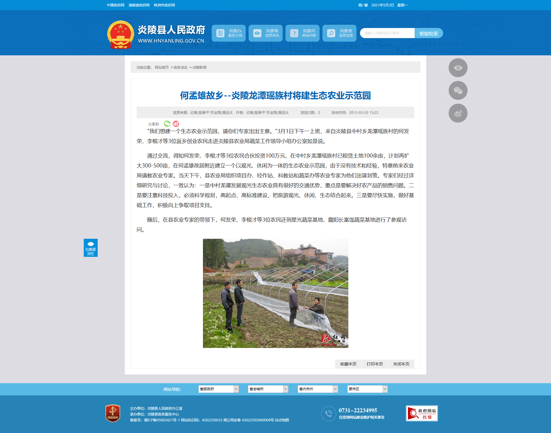 "我们想建一个生态农业示范园,请你们专家出出主意。"3月1日下午一上班,来自炎陵县中村乡龙潭瑶族村的何发荣、李根才等3位返乡创业农民走进炎陵县农业局蔬菜工作领导小组办公室如是说。
