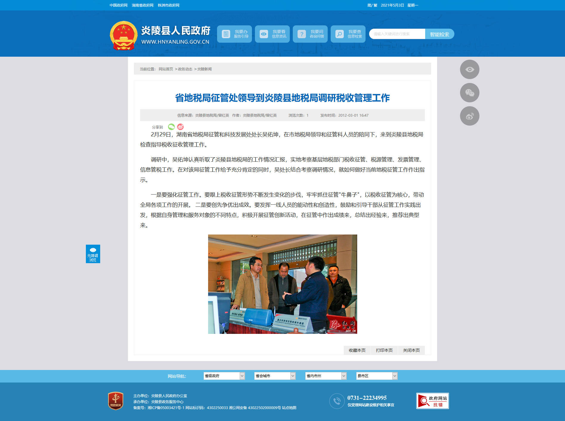 2月29日,湖南省地税局征管和科技发展处处长吴佑坤,在市地税局领导和征管科人员的陪同下,来到炎陵县地税局检查指导税收征收管理工作。