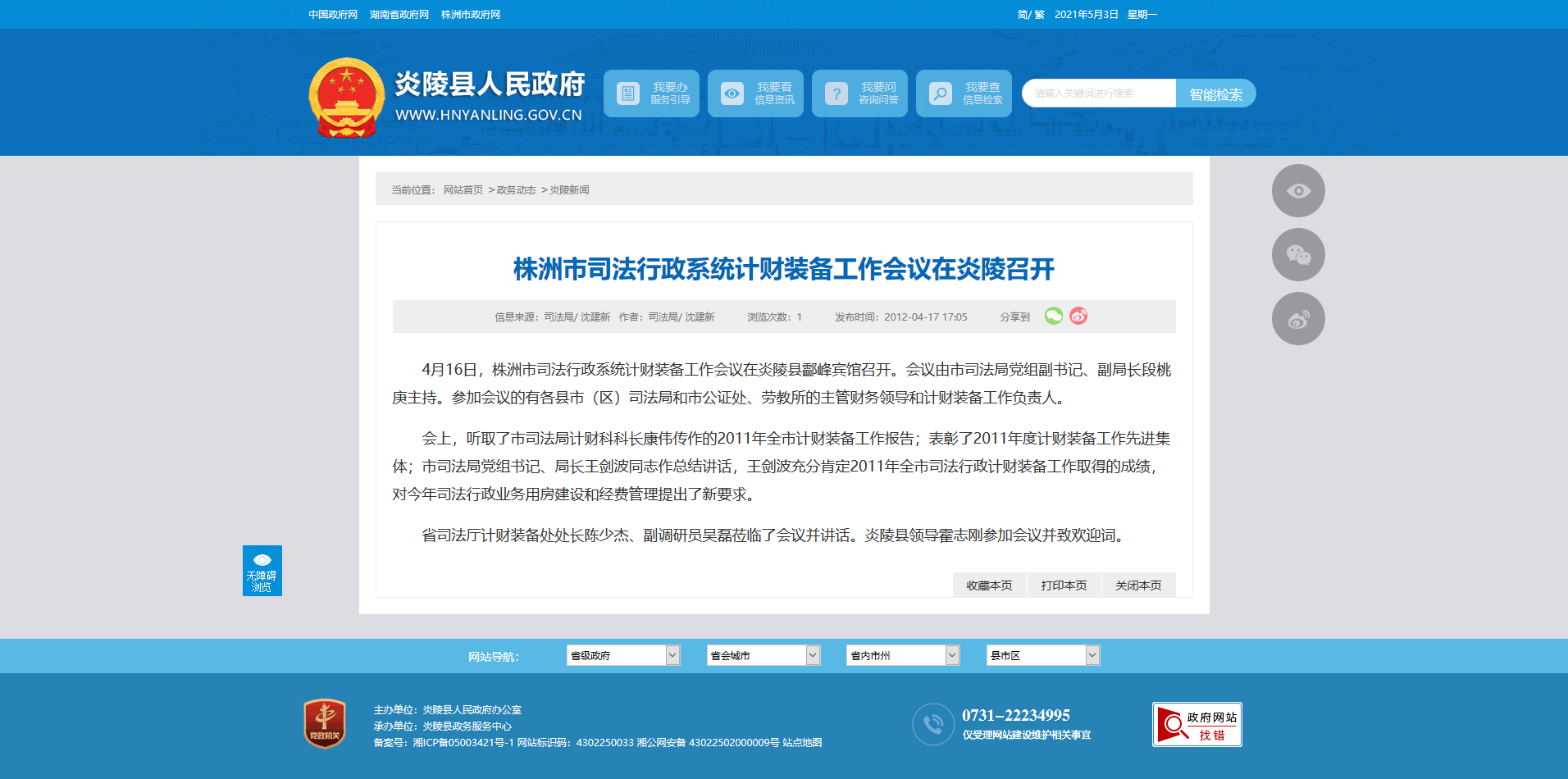 省司法厅计财装备处处长陈少杰、副调研员吴磊莅临了会议并讲话。炎陵县领导霍志刚参加会议并致欢迎词。