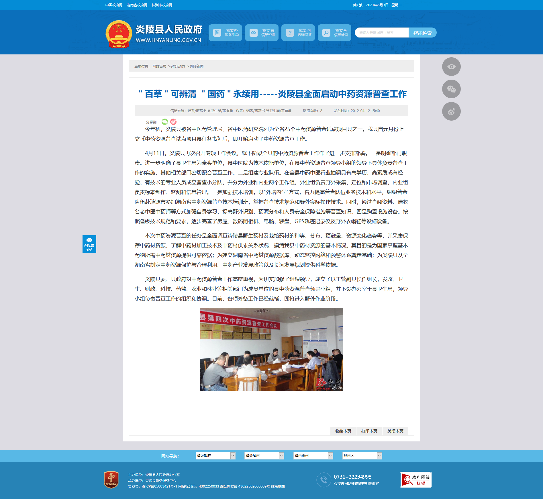 今年初,炎陵县被省中医药管理局、省中医药研究院列为全省25个中药资源普查试点项目县之一。我县自元月份上交《中药资源普查试点项目县任务书》后,即开始启动了中药资源普查工作。