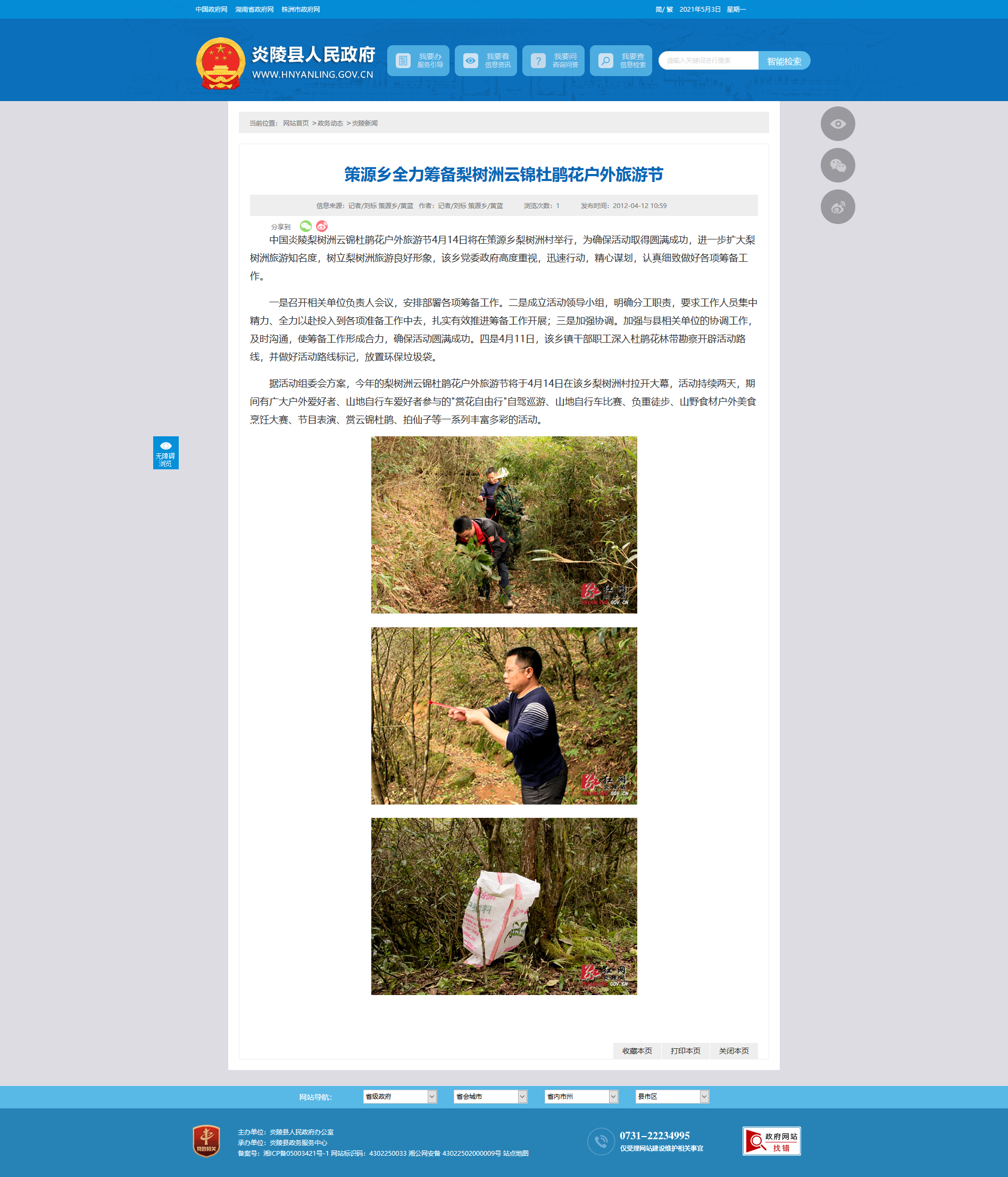 中国炎陵梨树洲云锦杜鹃花户外旅游节4月14日将在策源乡梨树洲村举行,为确保活动取得圆满成功,进一步扩大梨树洲旅游知名度,树立梨树洲旅游良好形象,该乡党委政府高度重视,迅速行动,精心谋划,认真细致做好各项筹备工作。