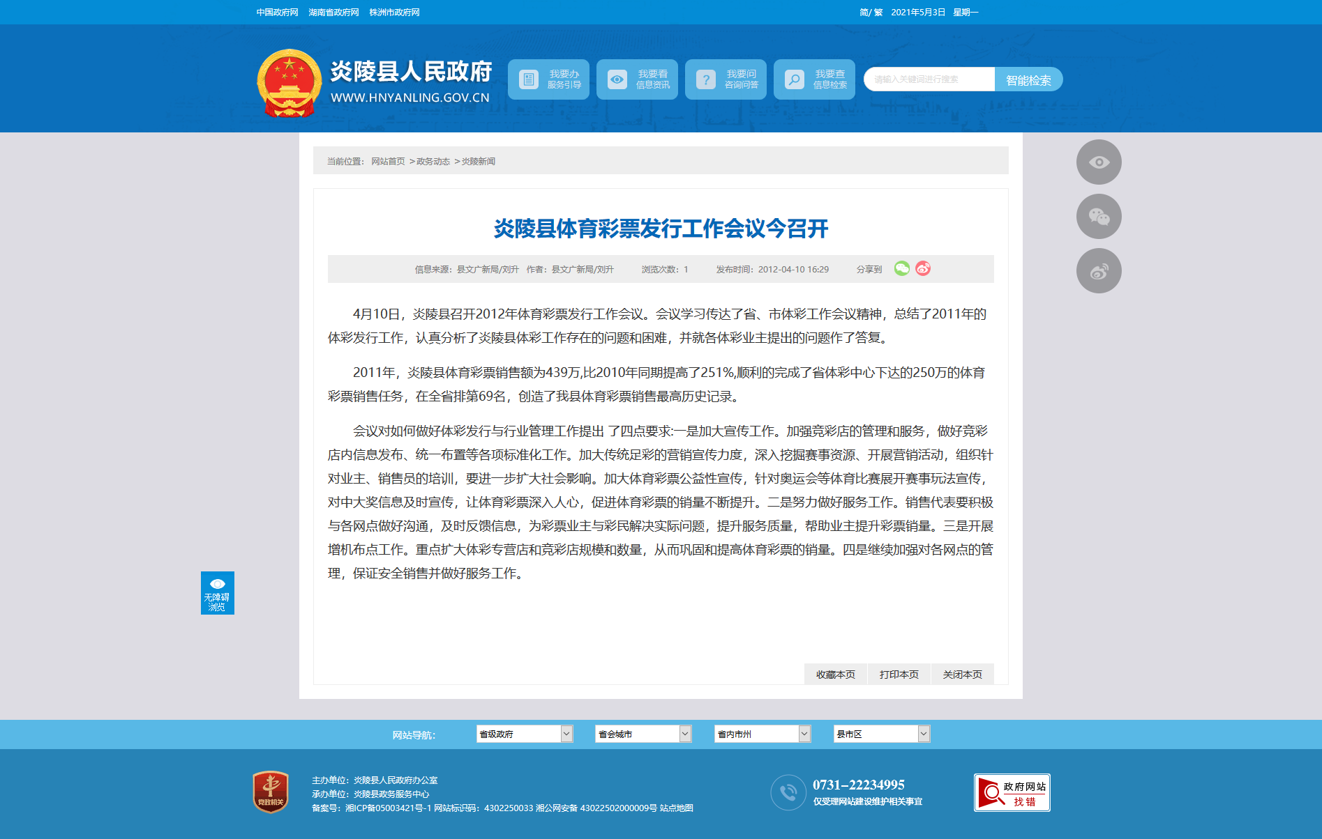 4月10日,炎陵县召开2012年体育彩票发行工作会议。会议学习传达了省、市体彩工作会议精神,总结了2011年的体彩发行工作,认真分析了炎陵县体彩工作存在的问题和困难,并就各体彩业主提出的问题作了答复。