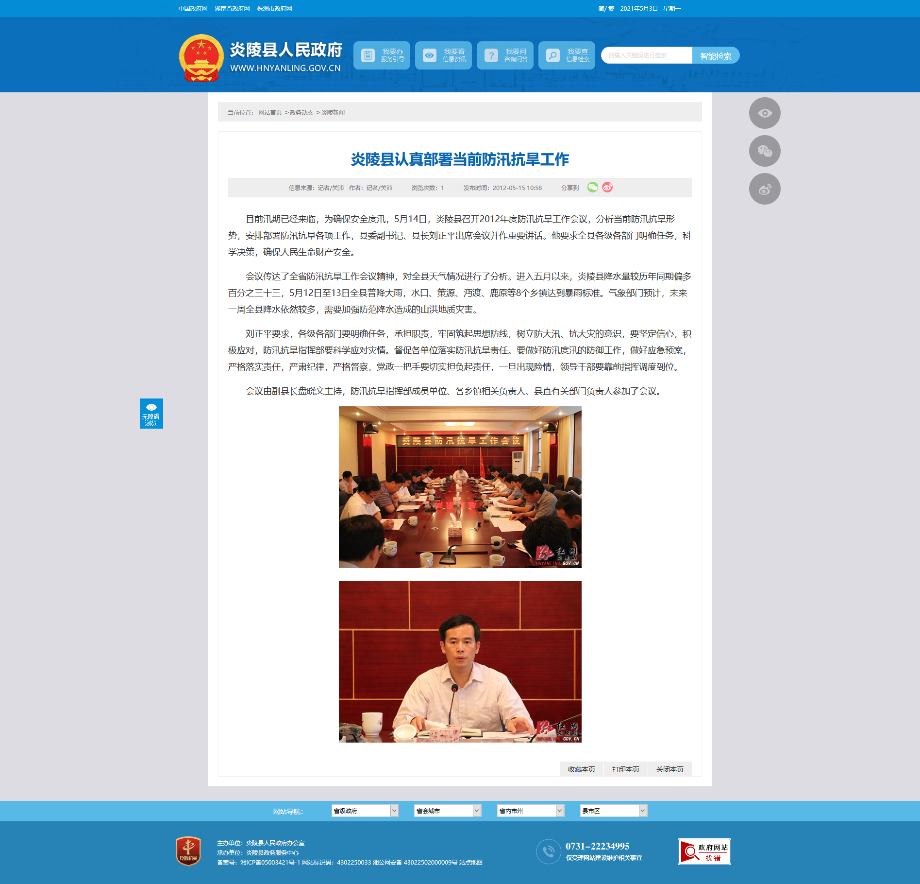 目前汛期已经来临,为确保安全度汛,5月14日,炎陵县召开2012年度防汛抗旱工作会议,分析当前防汛抗旱形势,安排部署防汛抗旱各项工作,县委副书记、县长刘正平出席会议并作重要讲话。他要求全县各级各部门明确任务,科学决策,确保人民生命财产安全。