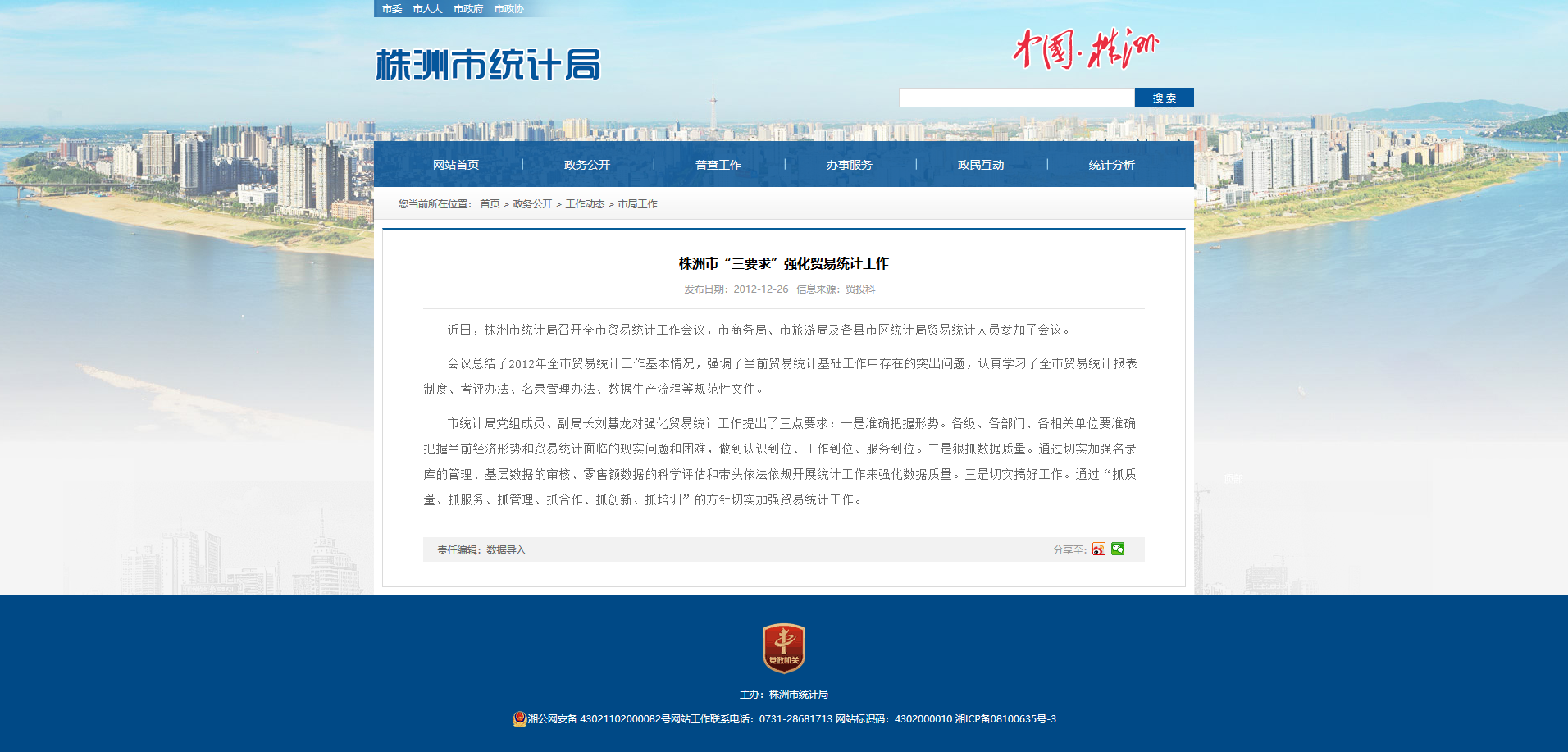 近日,株洲市统计局召开全市贸易统计工作会议,市商务局、市旅游局及各县市区统计局贸易统计人员参加了会议。