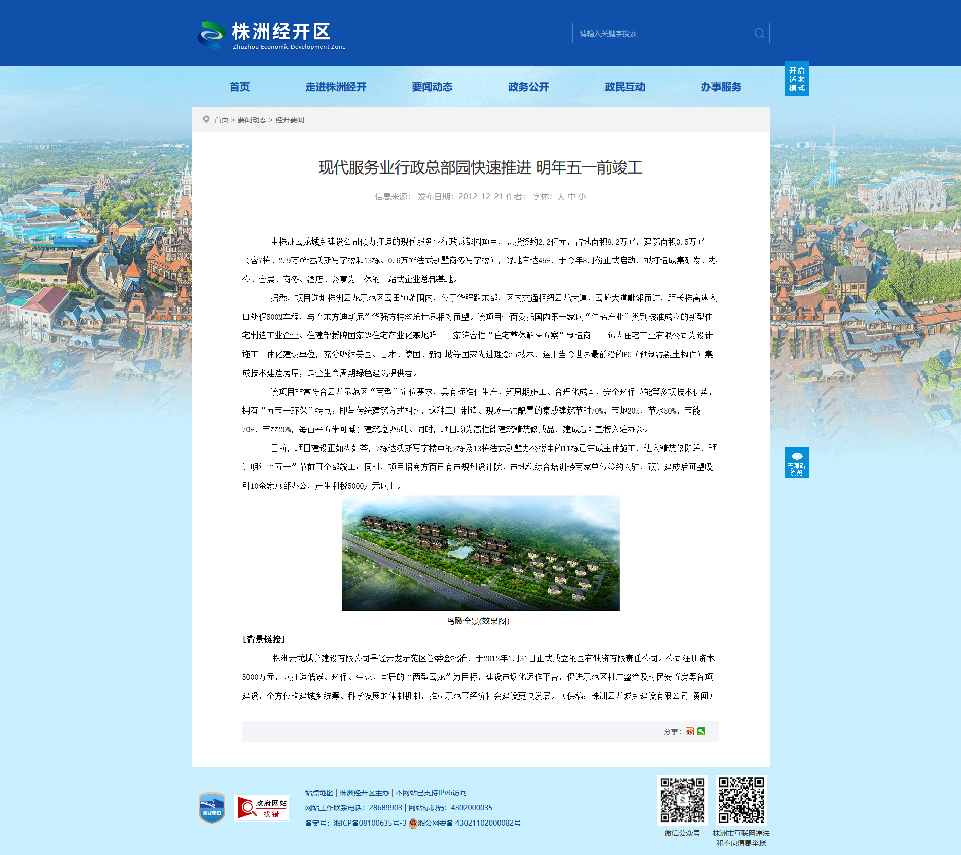 由株洲云龙城乡建设公司倾力打造的现代服务业行政总部园项目,总投资约2.2亿元,占地面积8.2万㎡,建筑面积3.5万㎡(含7栋、2.9万㎡达沃斯写字楼和13栋、0.6万㎡法式别墅商务写字楼),绿地率达45%,于今年8月份正式启动,拟打造成集研发、办公、会展、商务、酒店、公寓为一体的一站式企业总部基地。