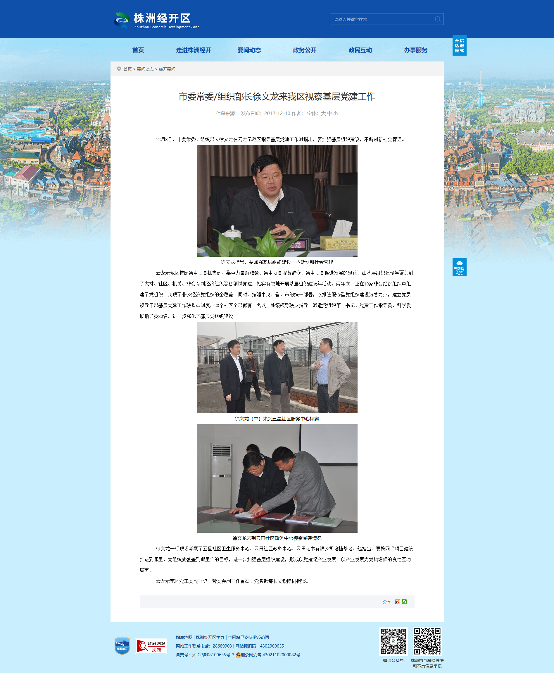 12月8日,市委常委、组织部长徐文龙在云龙示范区指导基层党建工作时指出,要加强基层组织建设,不断创新社会管理。