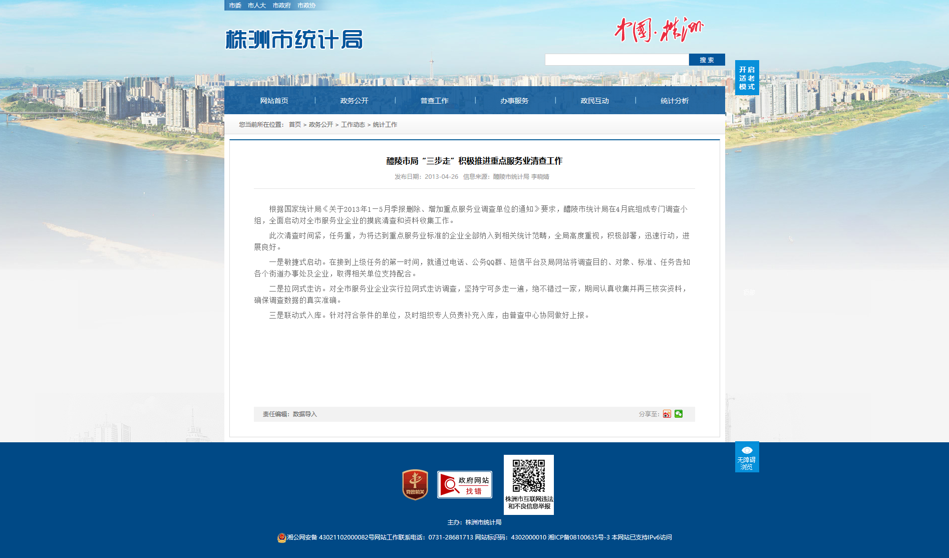 根据国家统计局《关于2013年1—5月季报删除、增加重点服务业调查单位的通知》要求,醴陵市统计局在4月底组成专门调查小组,全面启动对全市服务业企业的摸底清查和资料收集工作。