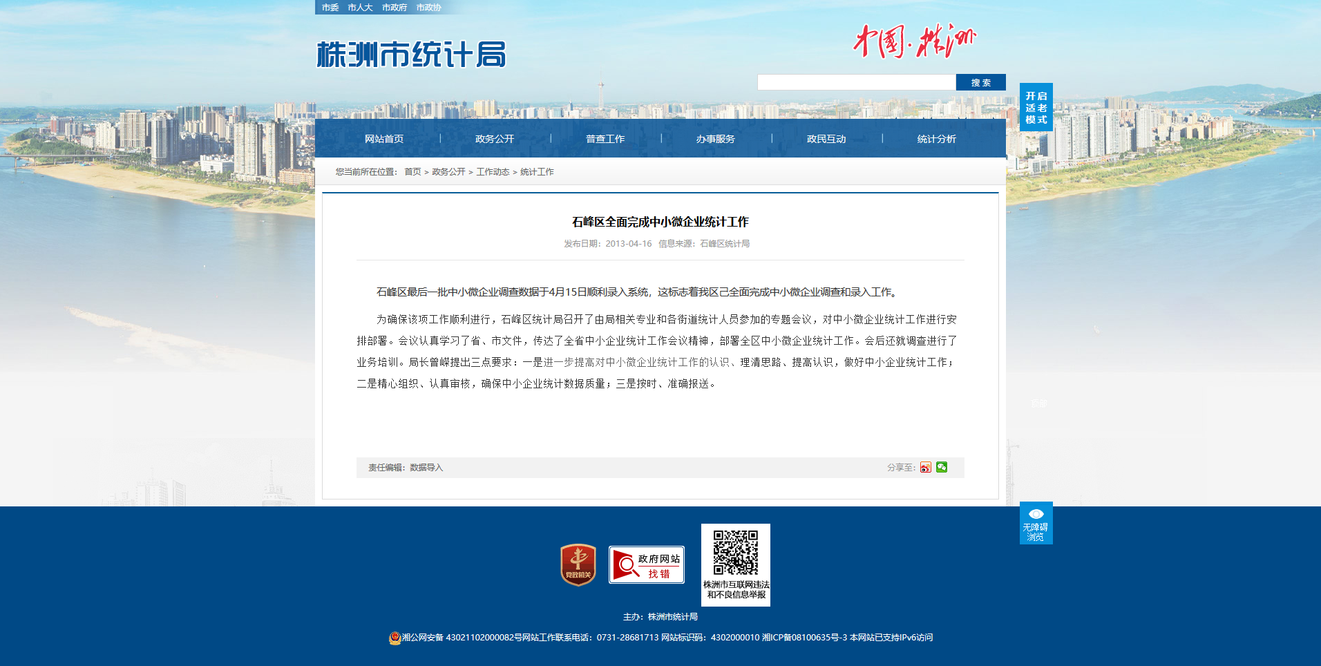 石峰区最后一批中小微企业调查数据于4月15日顺利录入系统,这标志着我区己全面完成中小微企业调查和录入工作。 为确保该项工作顺利进行,石峰区统计局召开了由局相关专业和各街道统计人员参加的专题会议,对中小微企业统计工作进行安排部署。会议认真学习了省、市文件,传达了全省中小企业统计工作会议精神,部署全区中小微企业统计工作。会后还就调查进行了业务培训。局长曾嵘提出三点要求:一是进一步提高对中小微企业统计工作的认识、理清思路、提高认识,做好中小企业统计工作;二是精心组织、认真审核,确保中小企业统计数据质量;三是按时、准确报送。