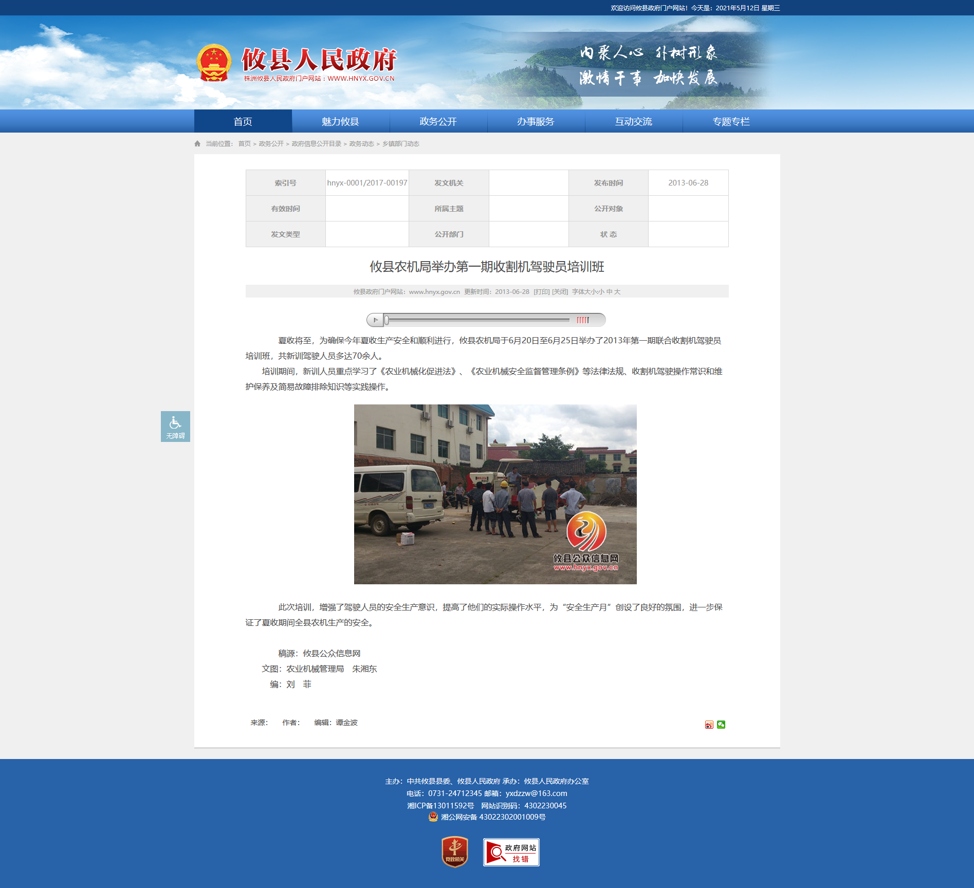 夏收将至,为确保今年夏收生产安全和顺利进行,攸县农机局于6月20日至6月25日举办了2013年第一期联合收割机驾驶员培训班,共新训驾驶人员多达70余人。