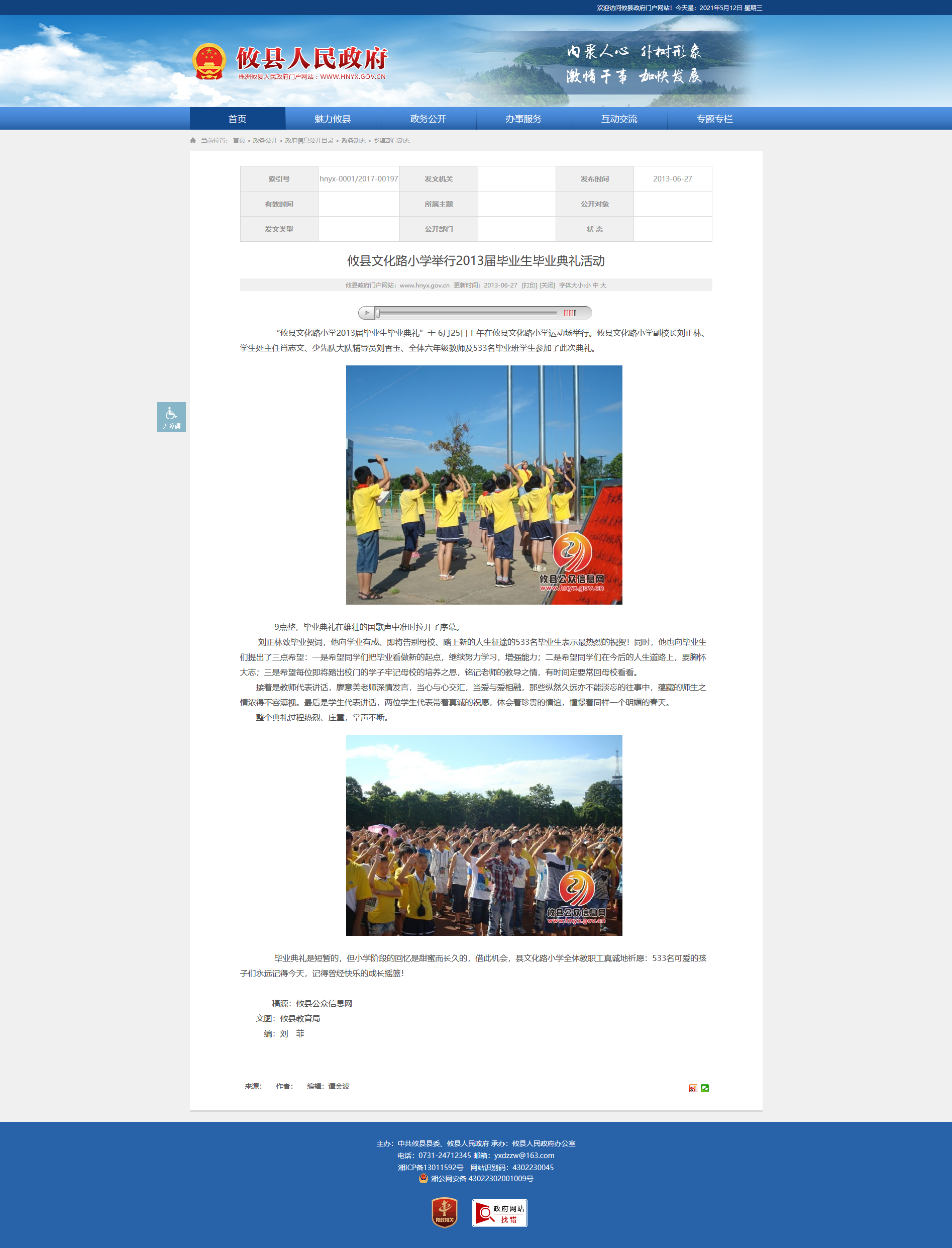 “攸县文化路小学2013届毕业生毕业典礼”于 6月25日上午在攸县文化路小学运动场举行。攸县文化路小学副校长刘正林、学生处主任肖志文、少先队大队辅导员刘香玉、全体六年级教师及533名毕业班学生参加了此次典礼。