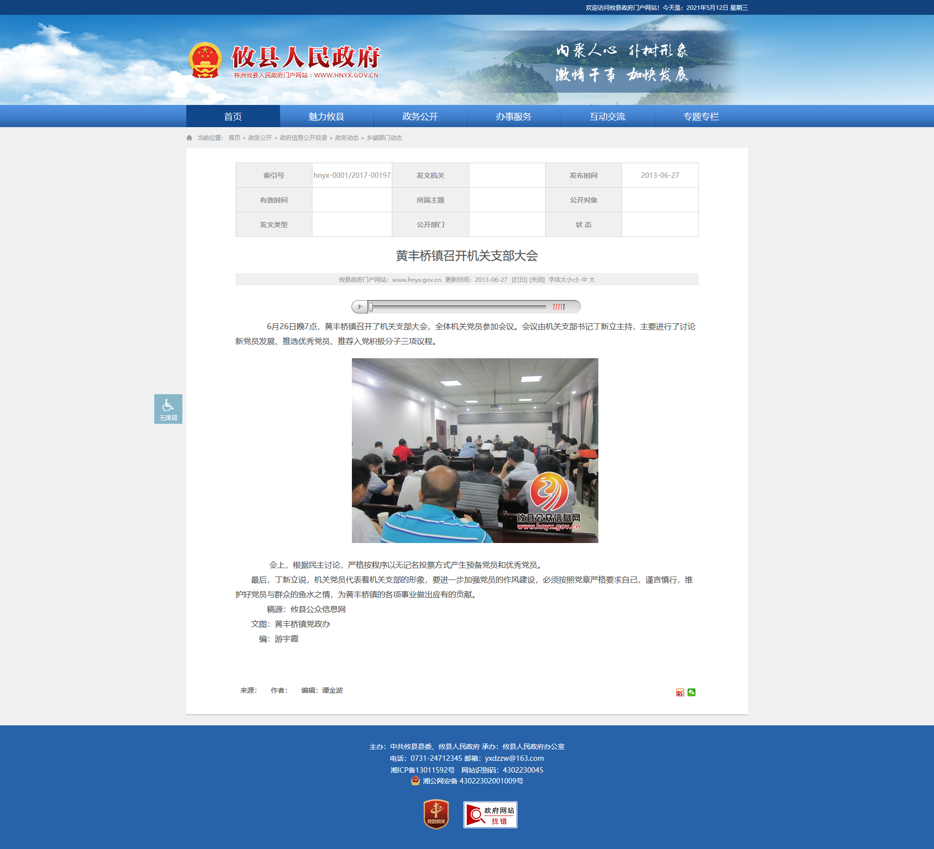6月26日晚7点,黄丰桥镇召开了机关支部大会,全体机关党员参加会议。会议由机关支部书记丁新立主持,主要进行了讨论新党员发展、推选优秀党员、推荐入党积极分子三项议程。